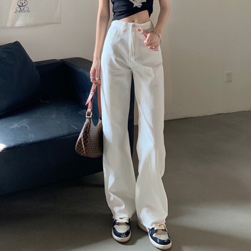 ジーンズ ルーズサマーワイドレッグパンツ ホワイト 夏物 ワイドパンツ タオタオイ88031662246