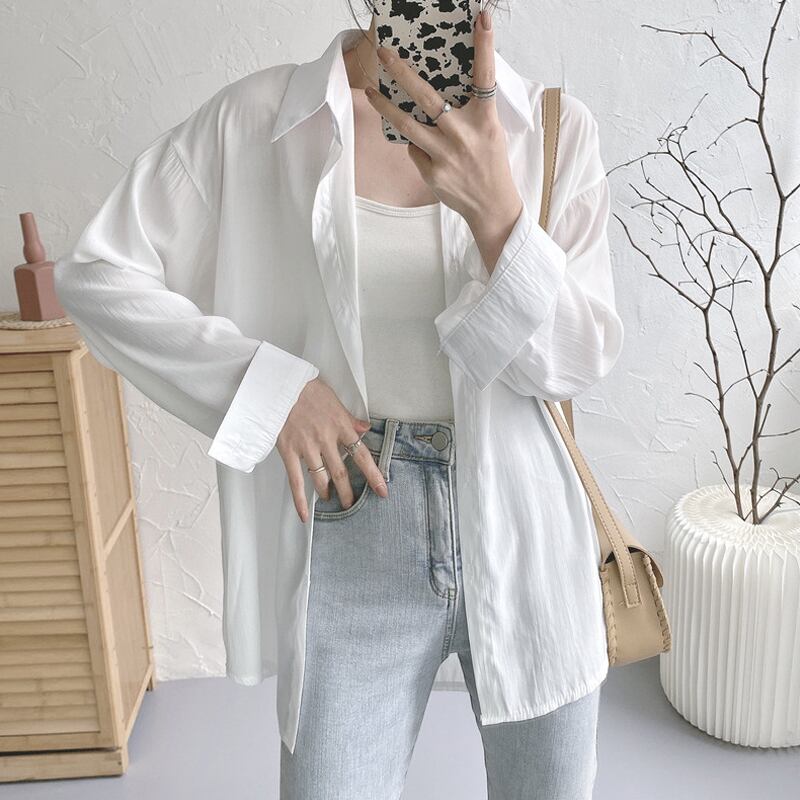 ホワイト薄手サマールーズトップス ロング 夏物 タオタオイ24488091243