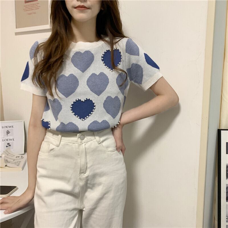 ニットショートTシャツ サマールーズトップス 夏物 タオタオイ70553873163