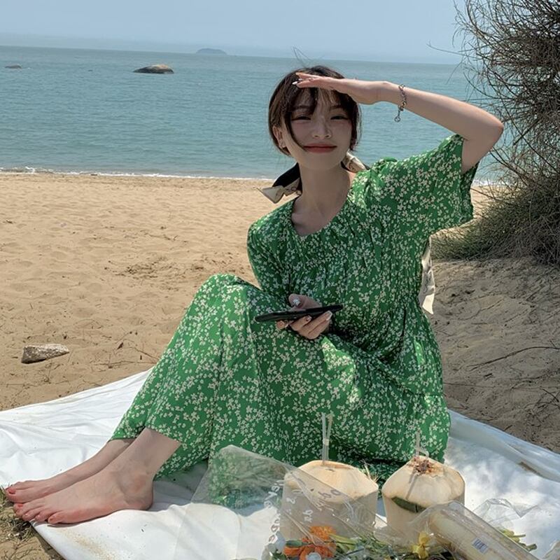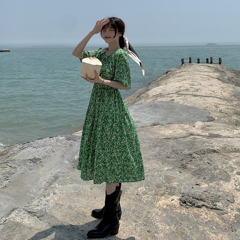 フローラルドレス サマーAラインスカート 大人ガーリー スウィート キュート カジュアル 夏物 花柄 タオタオイ15068198922
