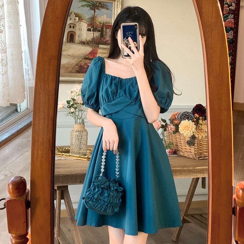 ホワイトカラースリーブドレス サマーAラインスカート ショート 夏物 スクウェア タオタオイ48797715059