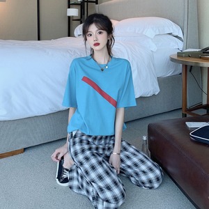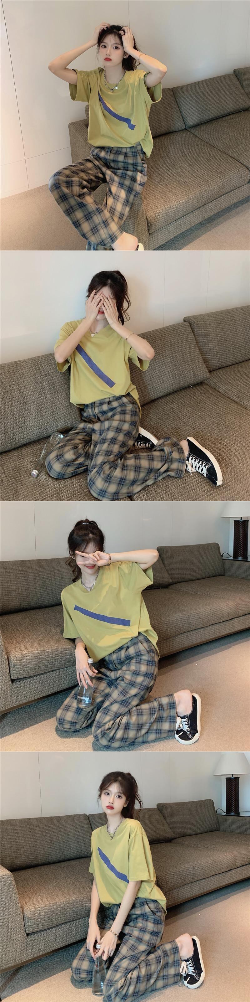 色:パープル半袖ワンピース,ブルー半袖ワンピース,緑の半袖ワンピース,ピンク半袖ワンピース,黒と白のチェックパンツワンピース,シングルチェック柄パンツ