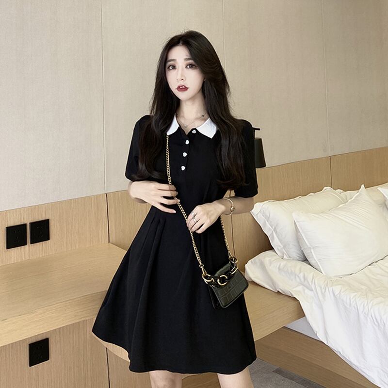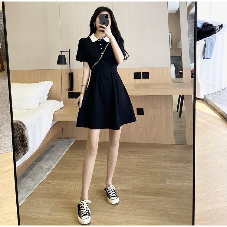 ブラックカラードレス サマー薄手ショートスカート 夏物 タオタオイ48229572758