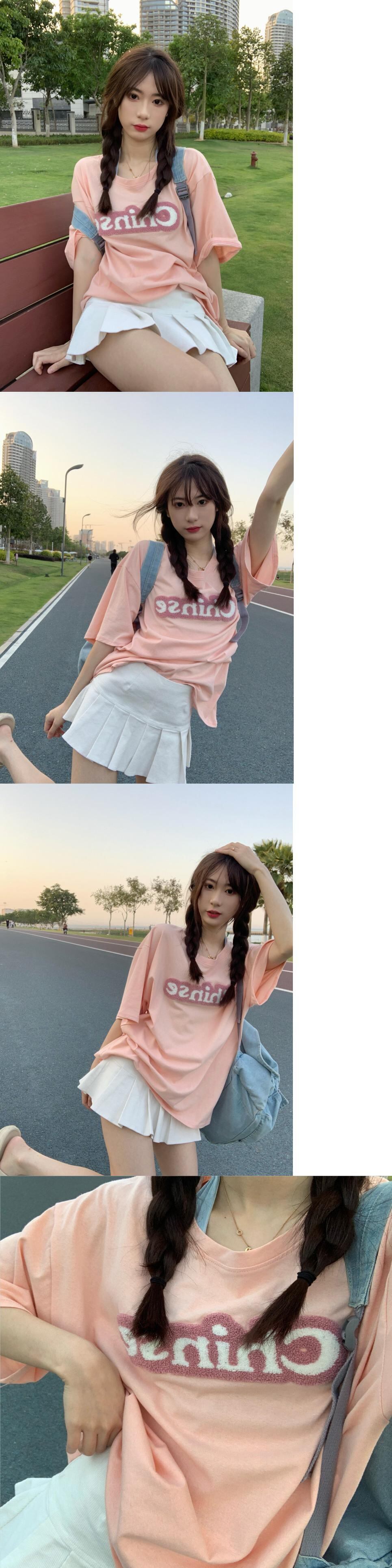 Tシャツ サマールーズレッドトップス ピンク 夏物 タオタオイ89433628585