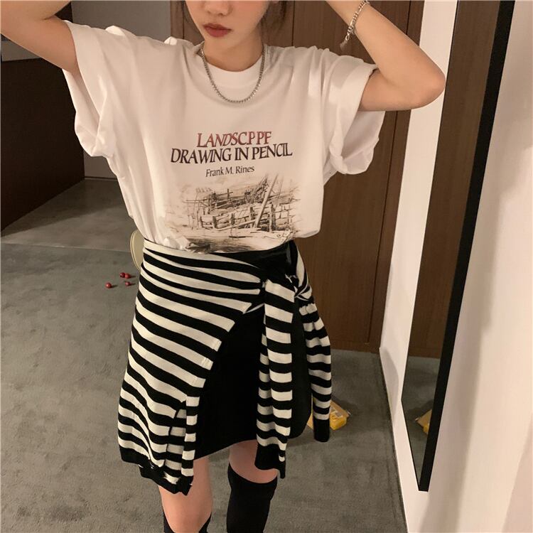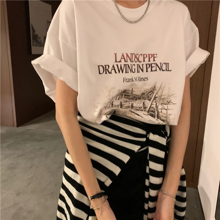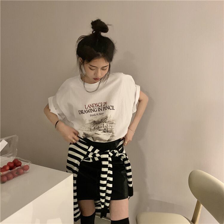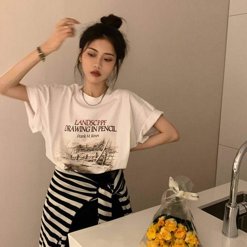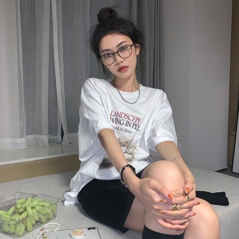 ホワイトTシャツ サマーレッドルーズトップス 夏物 タオタオイ85209819387