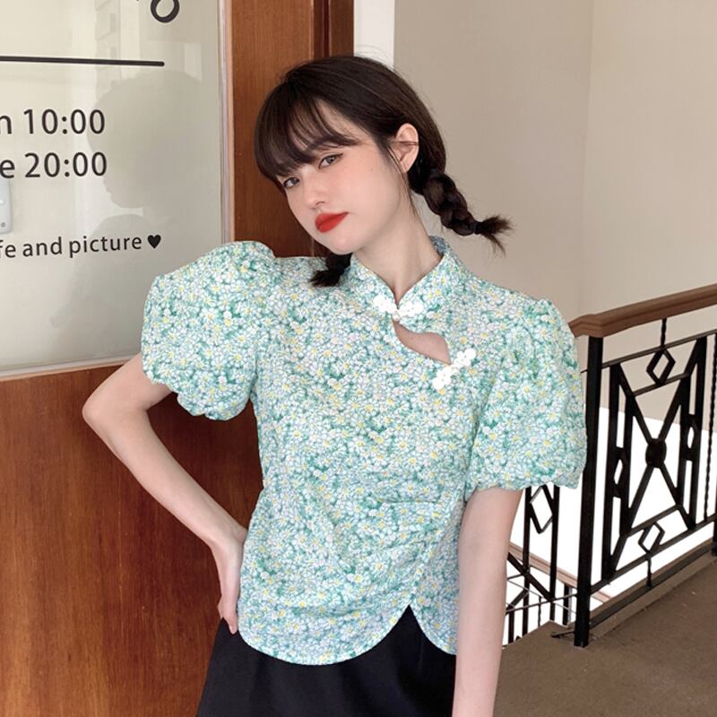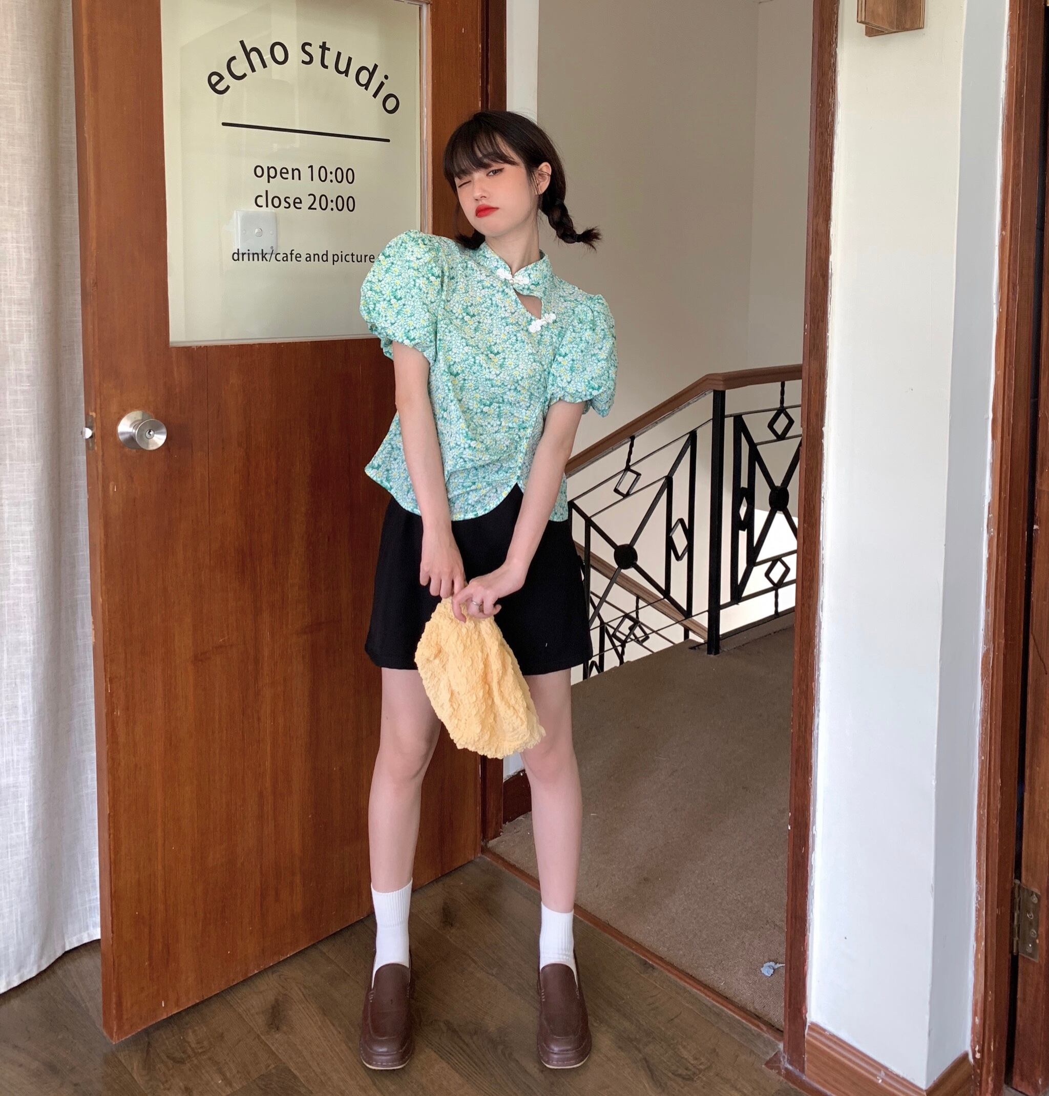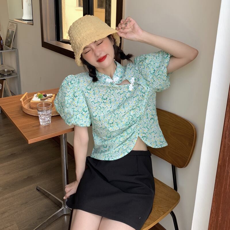 フローラルシャツ サマースリーブショートトップス 夏物 花柄 タオタオイ2361049743