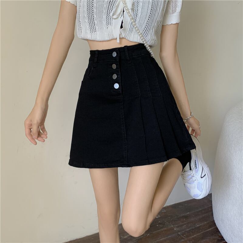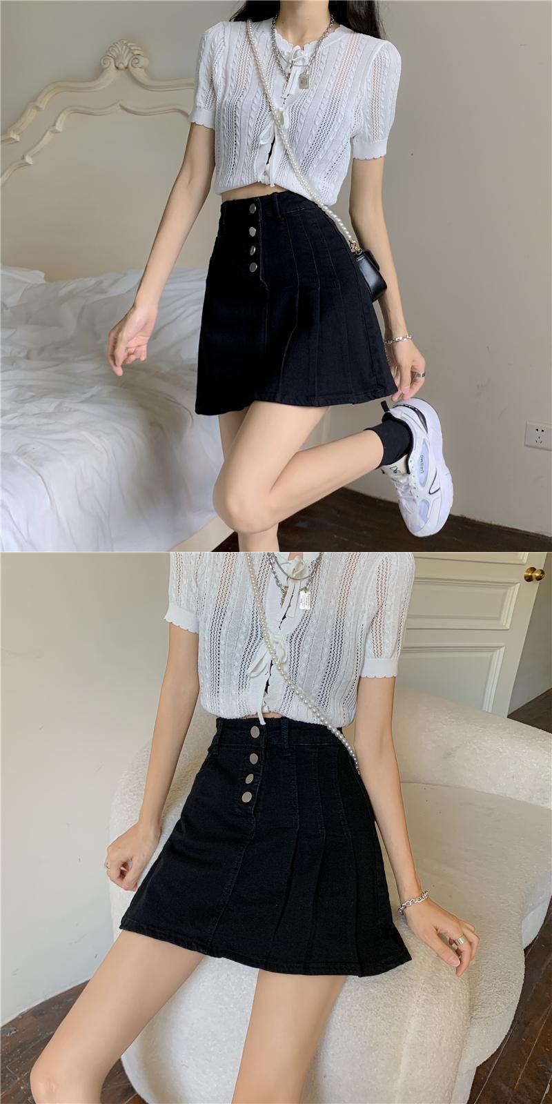 スカート ハイウェストウェストプリーツショートサマー 夏物 タオタオイ97832890719