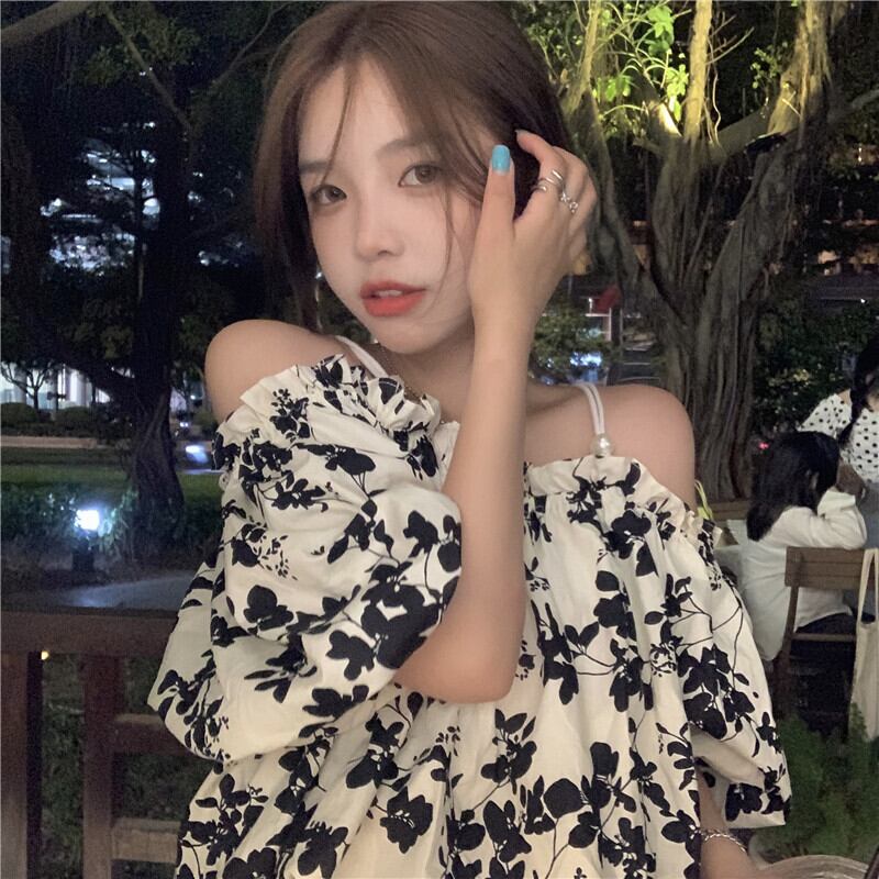 フローラルシフォンシャツ サマーワンショルダートップス スリーブスタイル 夏物 花柄 タオタオイ74700365231