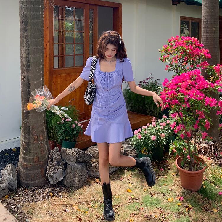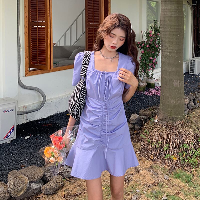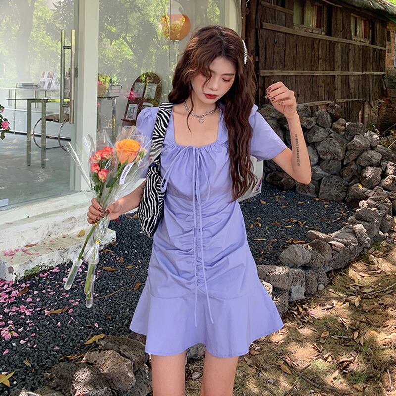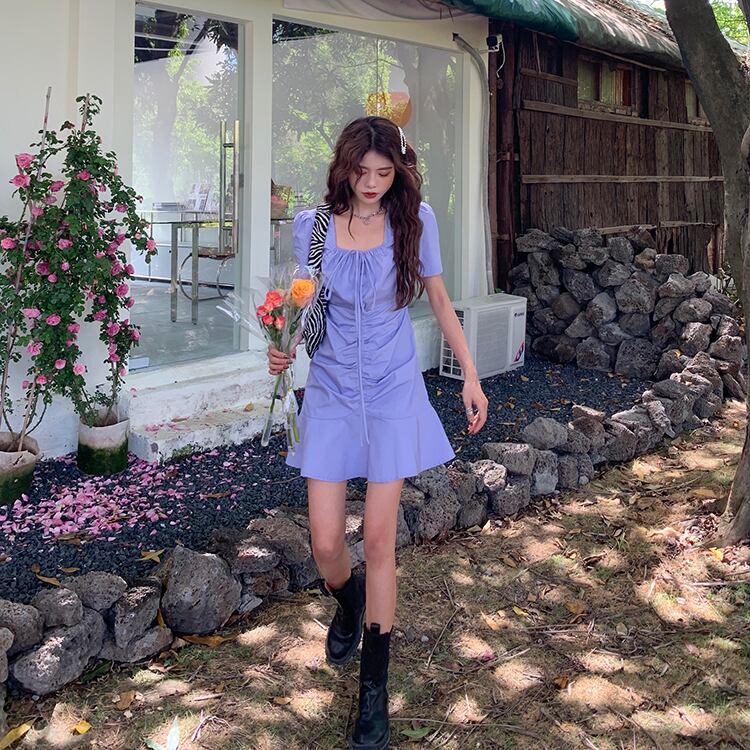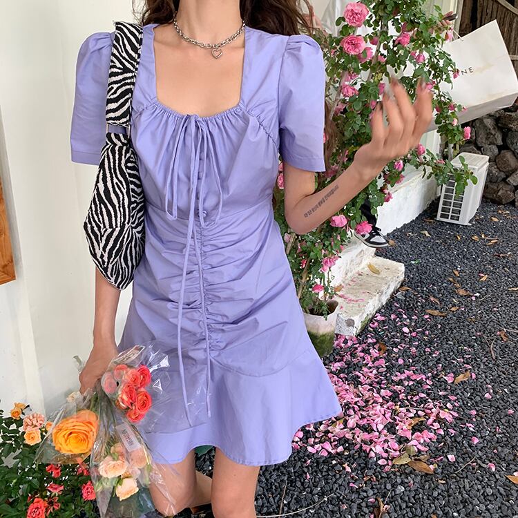 スリーブドレス サマープリーツギャザーAラインスカート スタイルショート 大人ガーリー スウィート キュート カジュアル 夏物 スクウェア タオタオイ71764646219