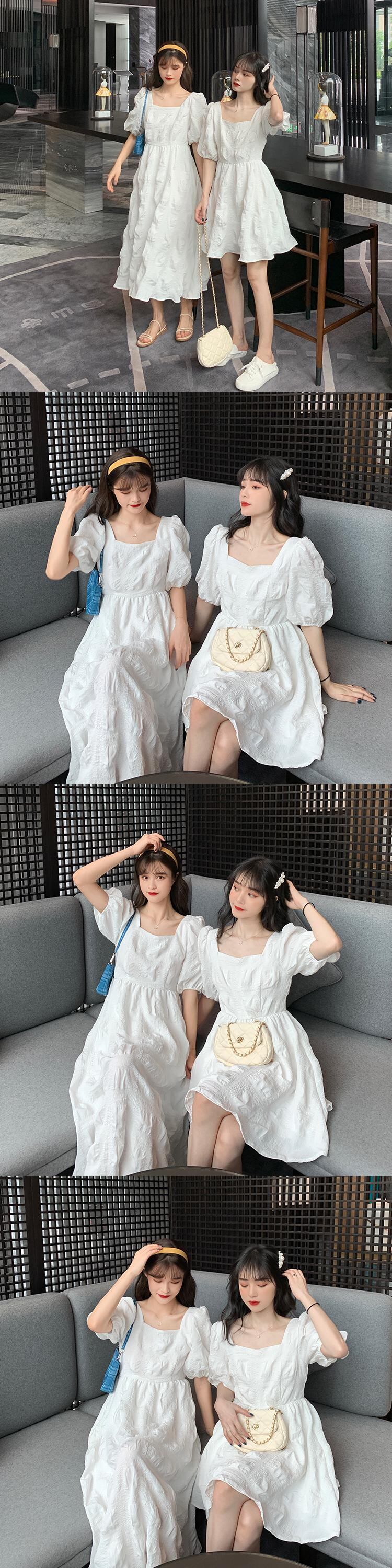 ホワイトスリーブドレス サマーカラーロングスカート 夏物 スクウェア タオタオイ4050981733