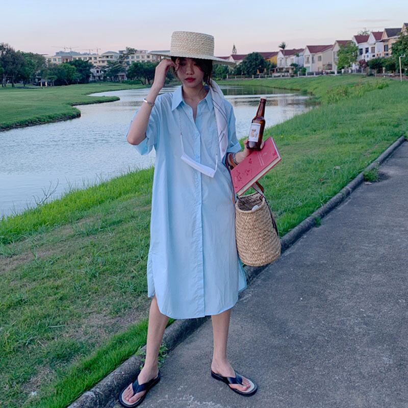 ブルーシャツ ドレス サマースタンダードルーズスカート レトロ 夏物 タオタオイ70641838930