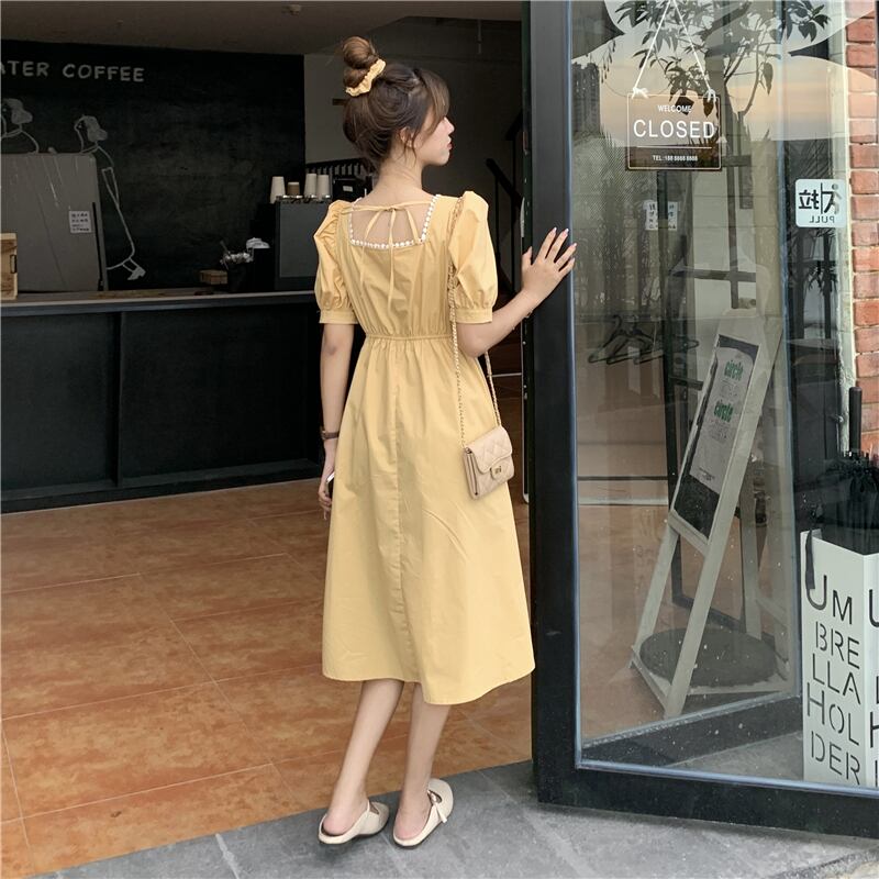 イエロースリーブドレス サマーウェストロングスカート 夏物 スクウェア タオタオイ49320431424