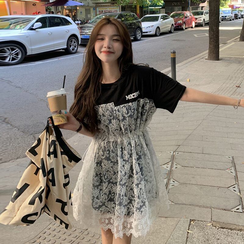 Tシャツ ドレス サマーAラインスカート ウェストレース 夏物 タオタオイ1231589996