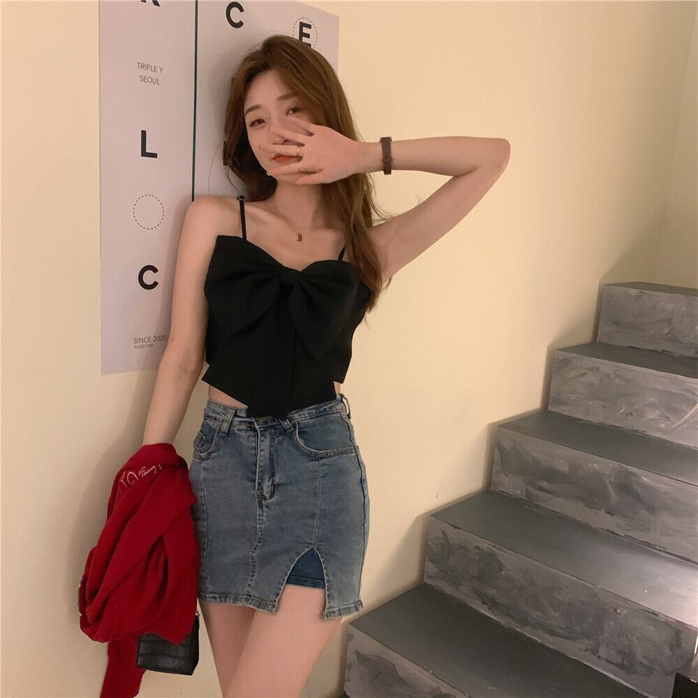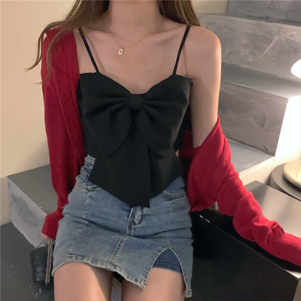 ホワイトサマーレッドショートトップス 夏物 タオタオイ61200611552