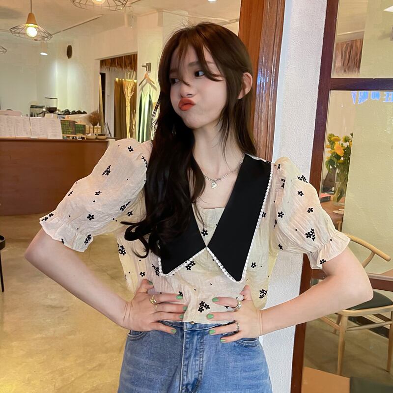 フローラルカラーシャツ サマースリーブトップス 夏物 花柄 タオタオイ13975904788