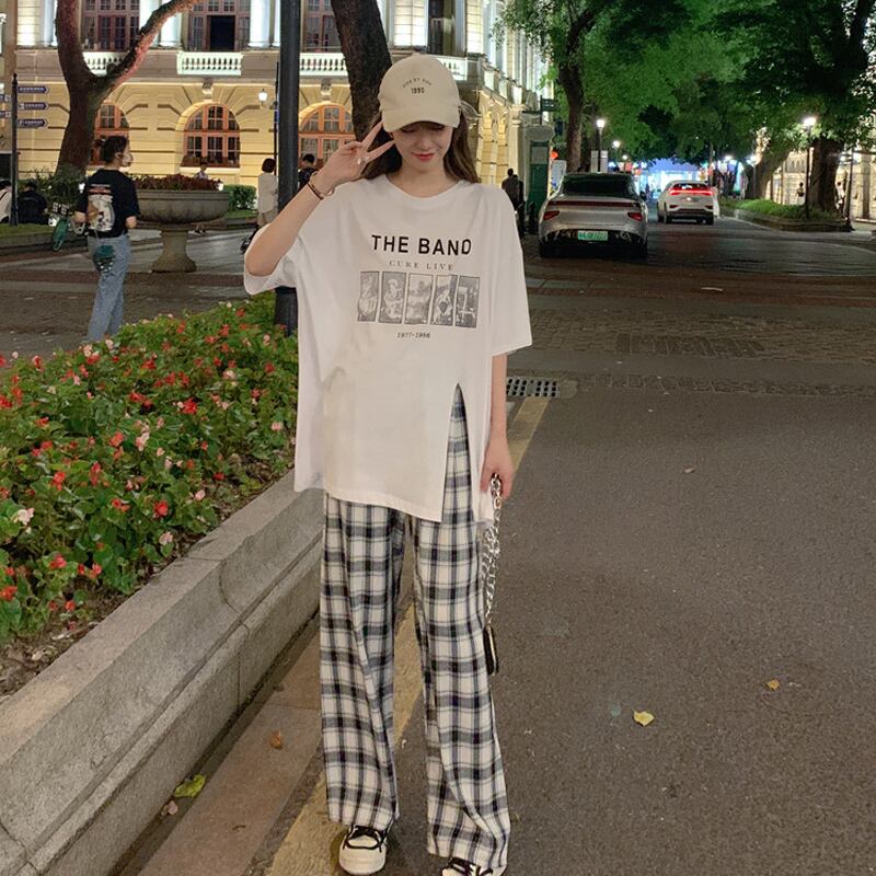 色:ホワイトTシャツシングルピース,黒のTシャツシングルピース,赤いTシャツのワンピース,紫のTシャツシングル,ブラックグリッドパンツワンピース,ブルーグリッドパンツワンピース,シングルアプリコットパンツ,グリーングリッドパンツワンピース