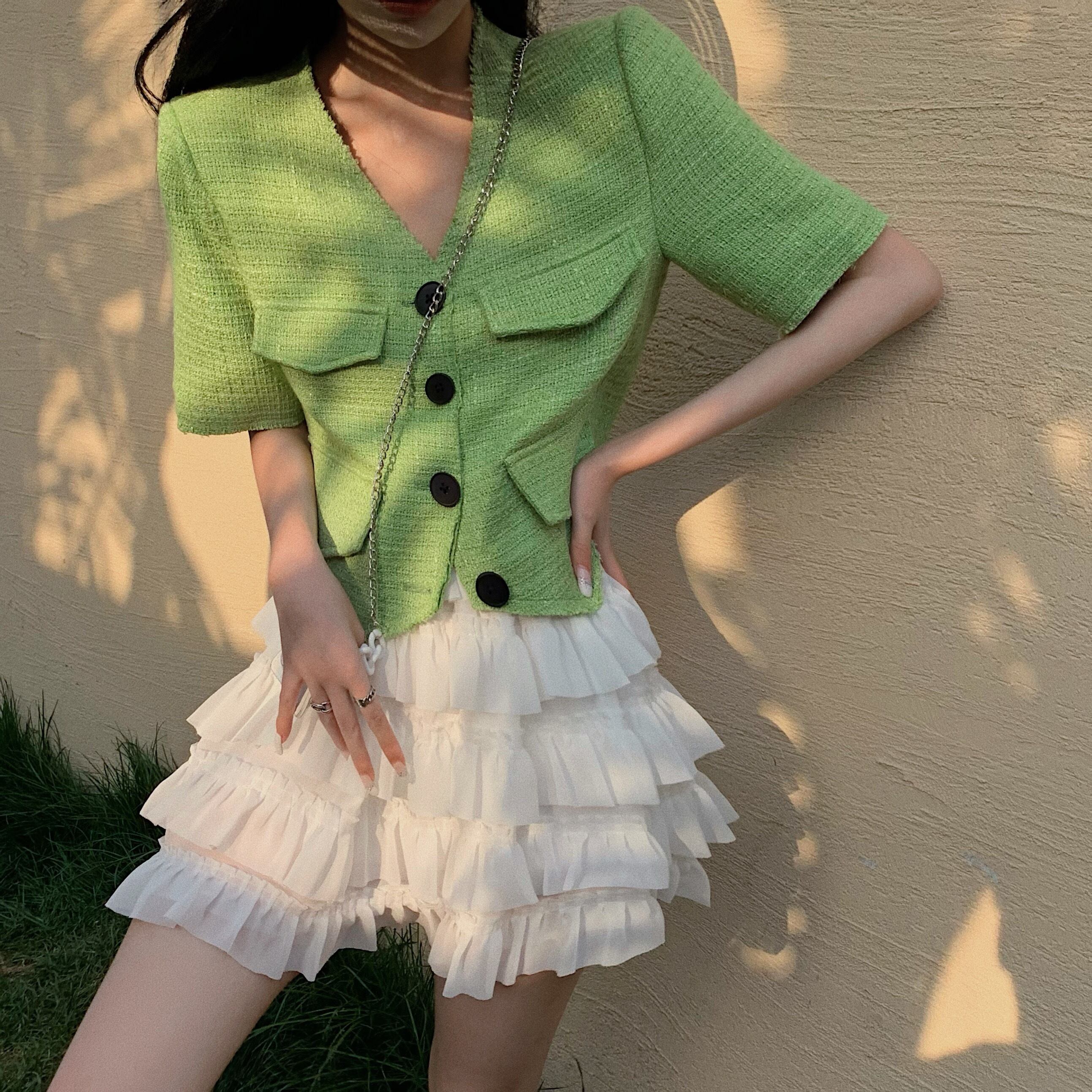 色:グリーントップシングルピース,ケーキスカートワンピース