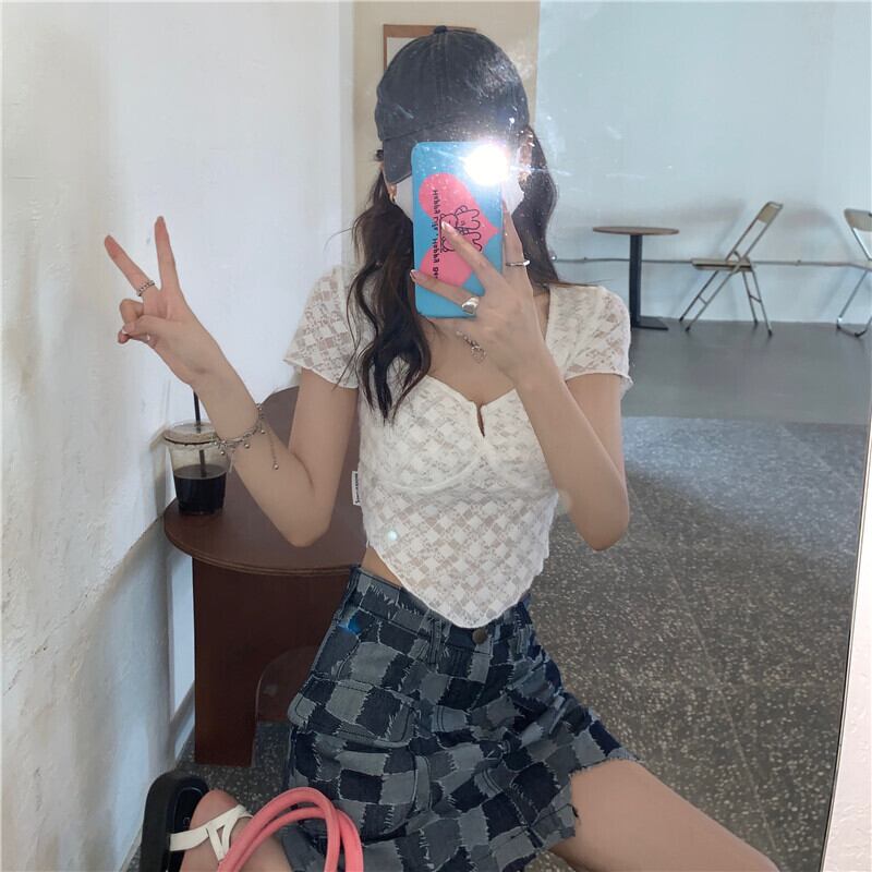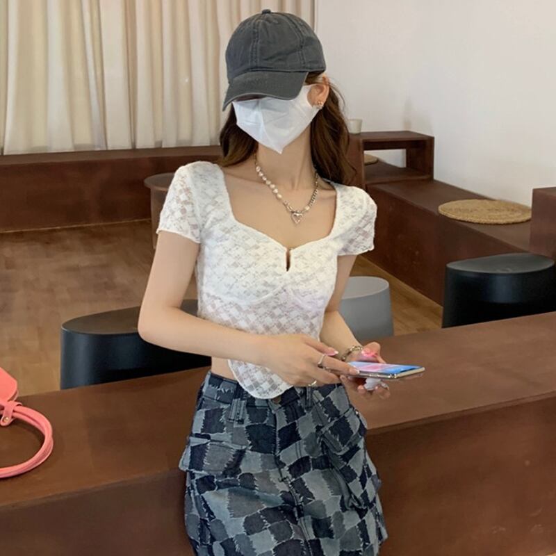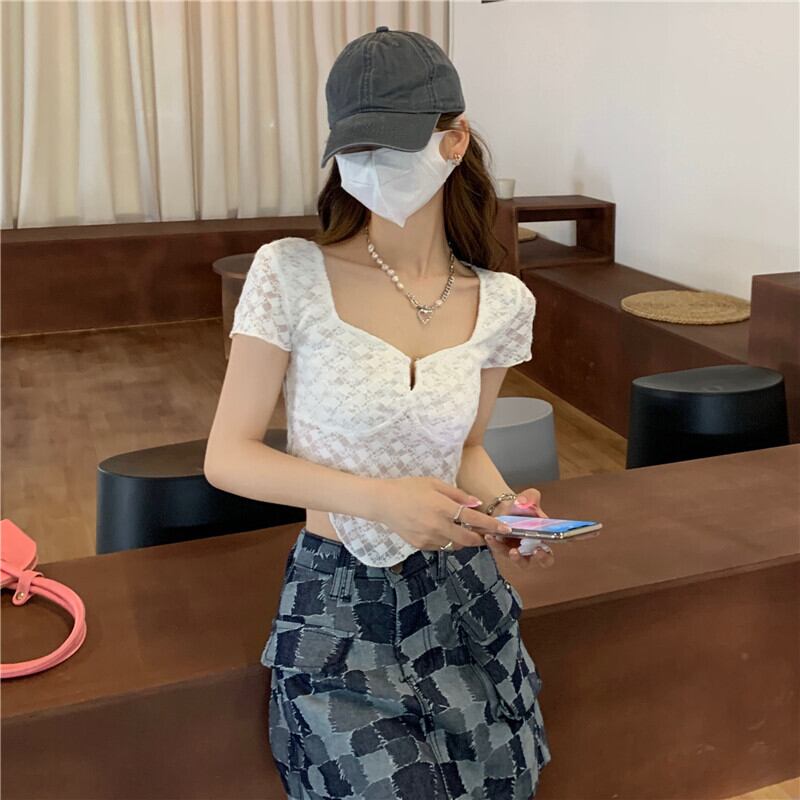 ホワイトカラーショートシフォンシャツ レディースサマー薄手スリムトップス 夏物 スクウェア タオタオイ30845312158