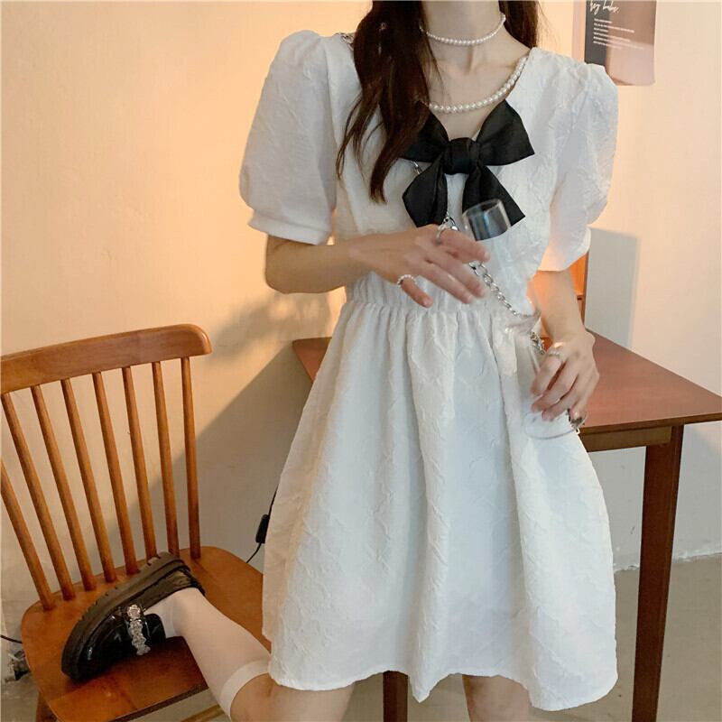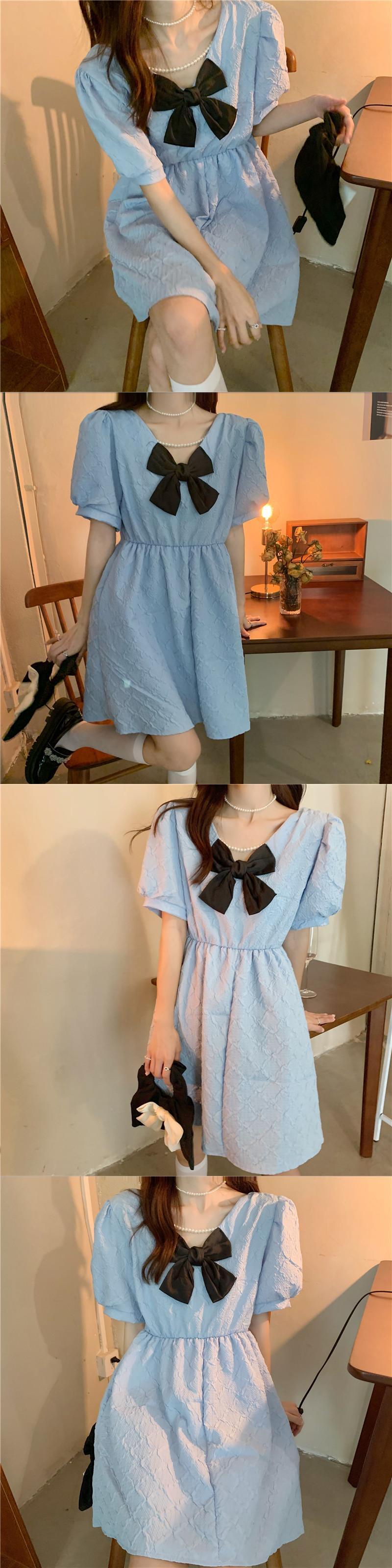 リボンドレス サマースリーブ薄手スカート 大人ガーリー スウィート キュート カジュアル 夏物 タオタオイ42081558488