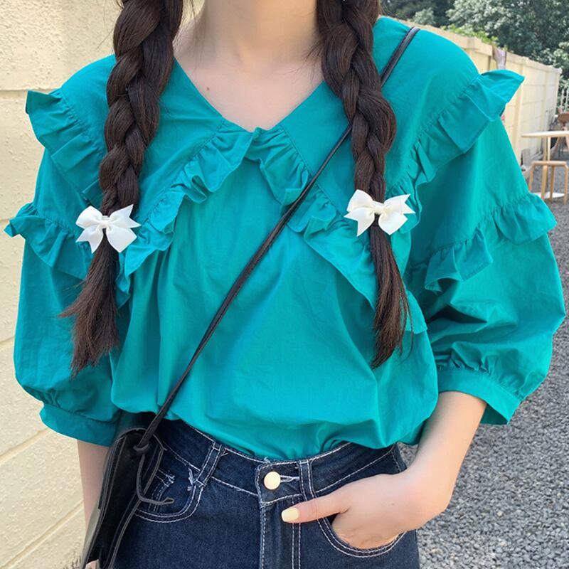 ホワイトカラーシャツ サマースタイル 大人ガーリー スウィート キュート カジュアル 夏物 タオタオイ61291197859