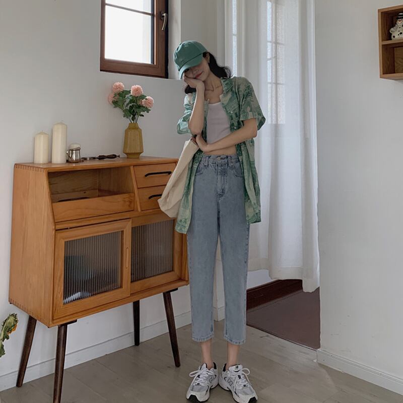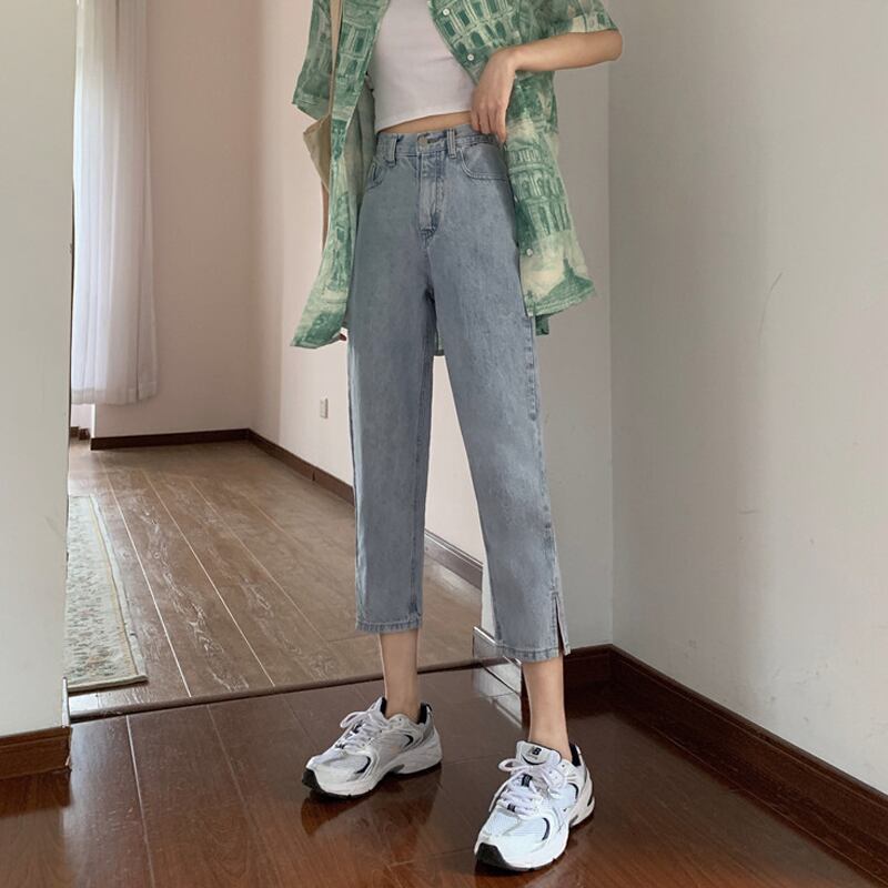 ジーンズ レディースサマールーズクロップドハイウェストウェストスリムパンツ レッド 夏物 タオタオイ41080654701