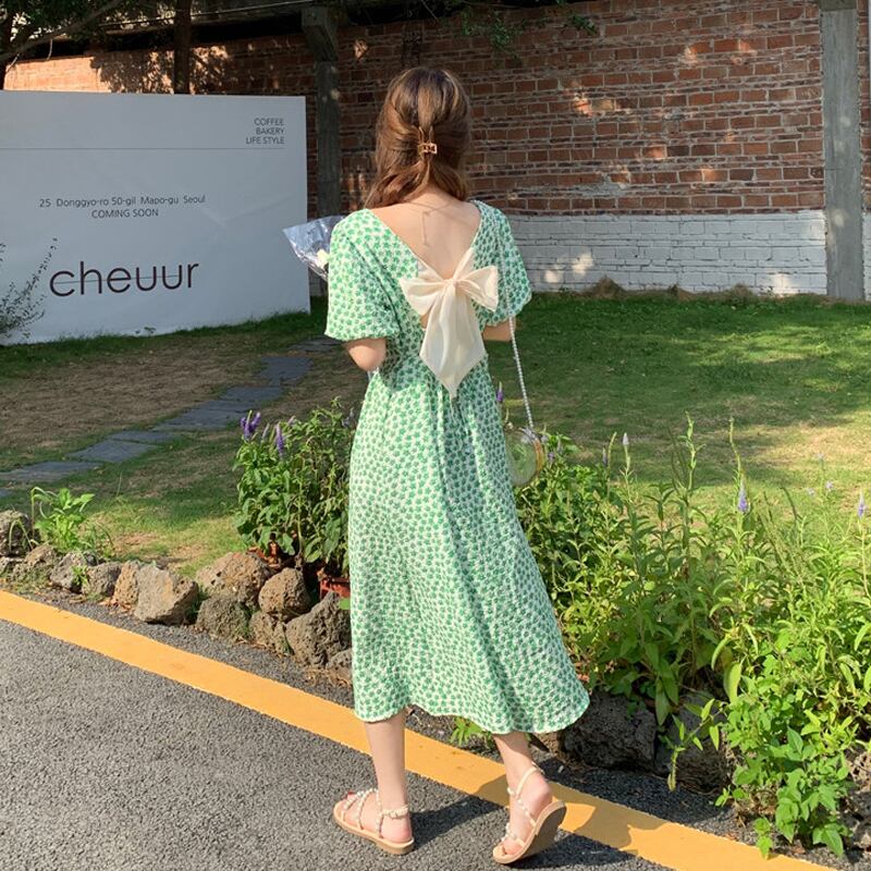 スリーブフローラルドレス サマーウェストロングスカート 夏物 花柄 タオタオイ23919725384