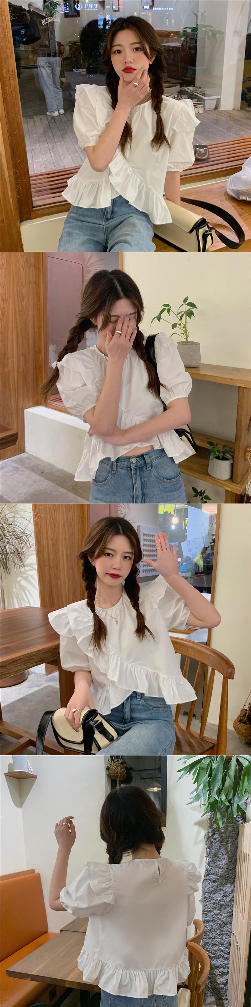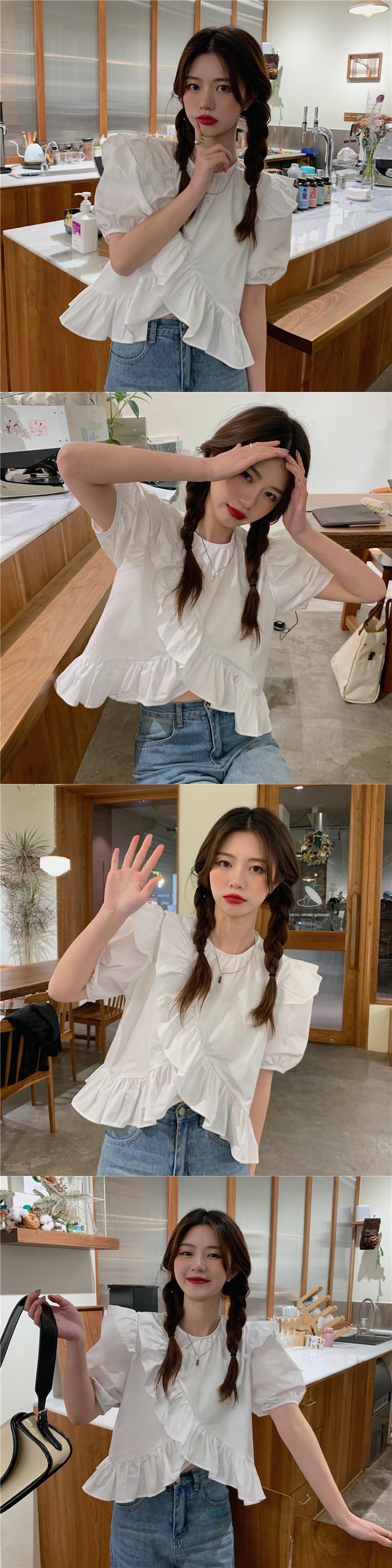 ホワイトシャツ サマースリーブトップス 大人ガーリー スウィート キュート カジュアル 夏物 タオタオイ38260914823