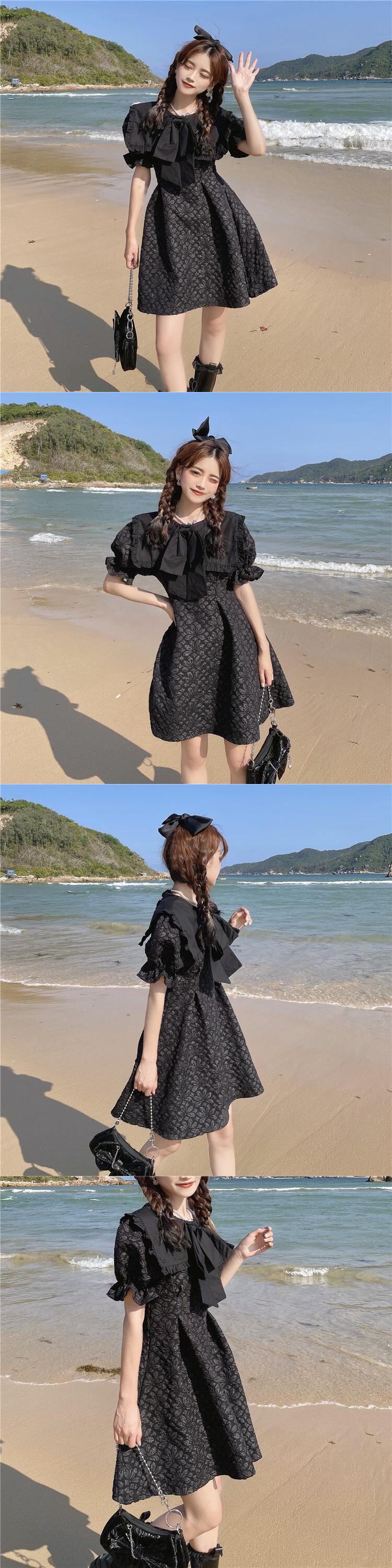 ブラックスリーブドレス レディースサマースタンダードショートスカート レトロ 夏物 タオタオイ14055177578
