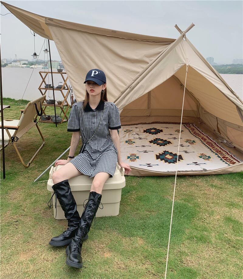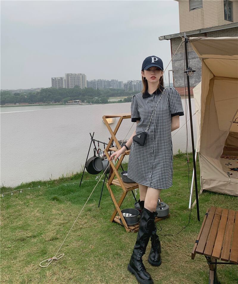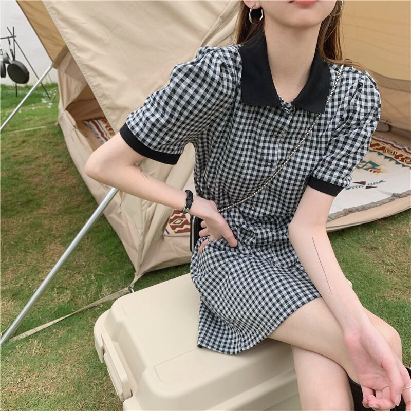 格子柄ドレス サマースタンダードAラインスカート スリーブショート レトロ 夏物 タオタオイ63141254455