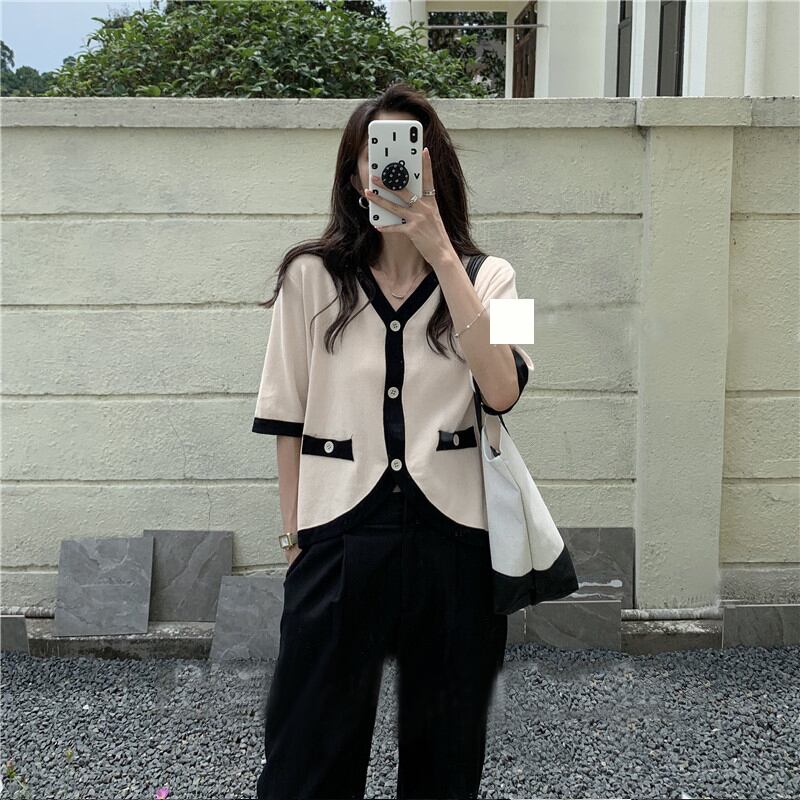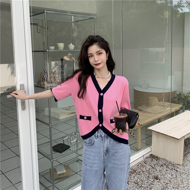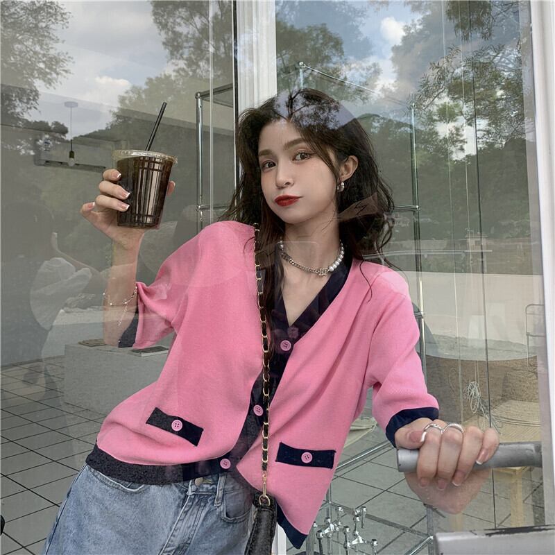Vネック薄手セーター レディースサマーレッドルーズ 夏物 タオタオイ74187787684