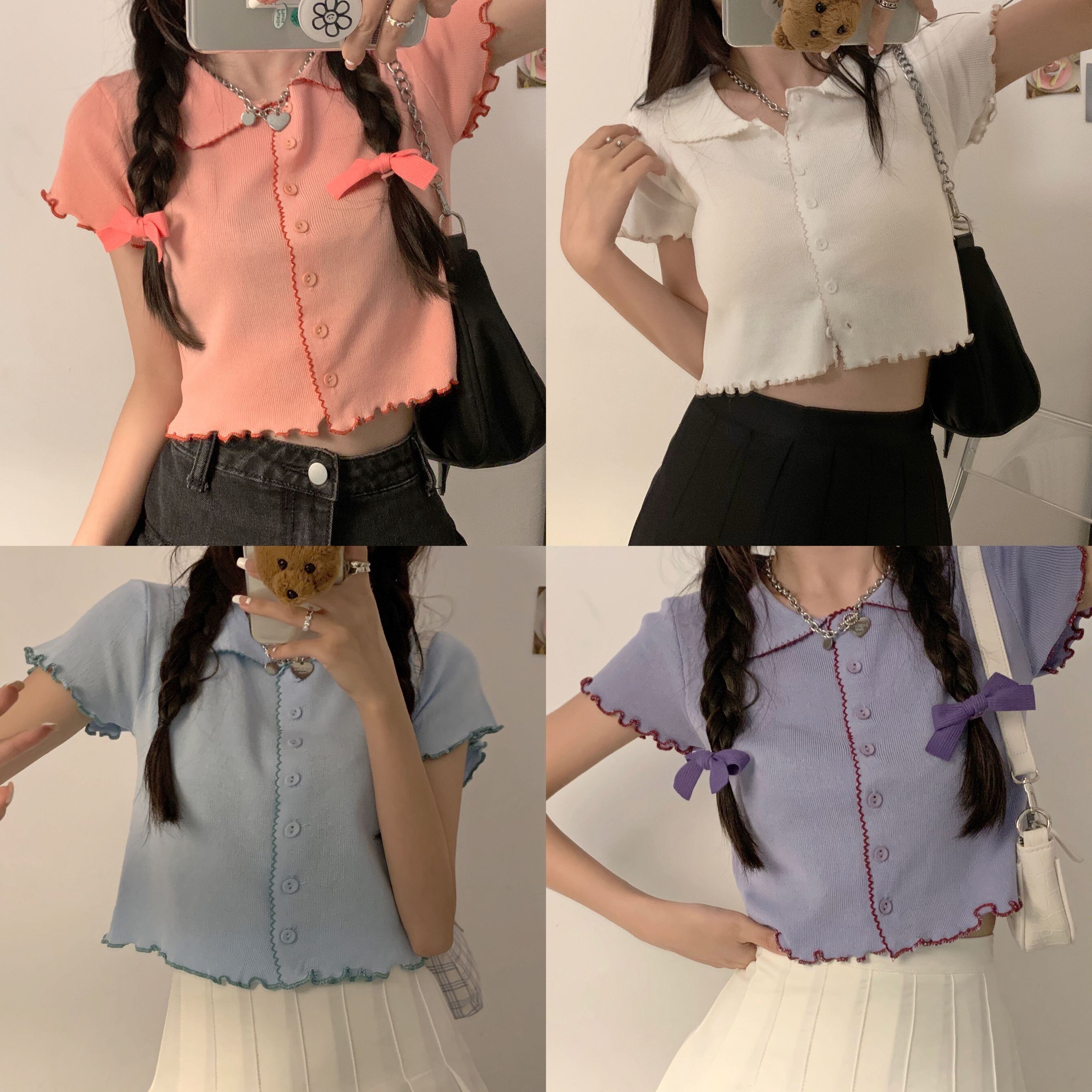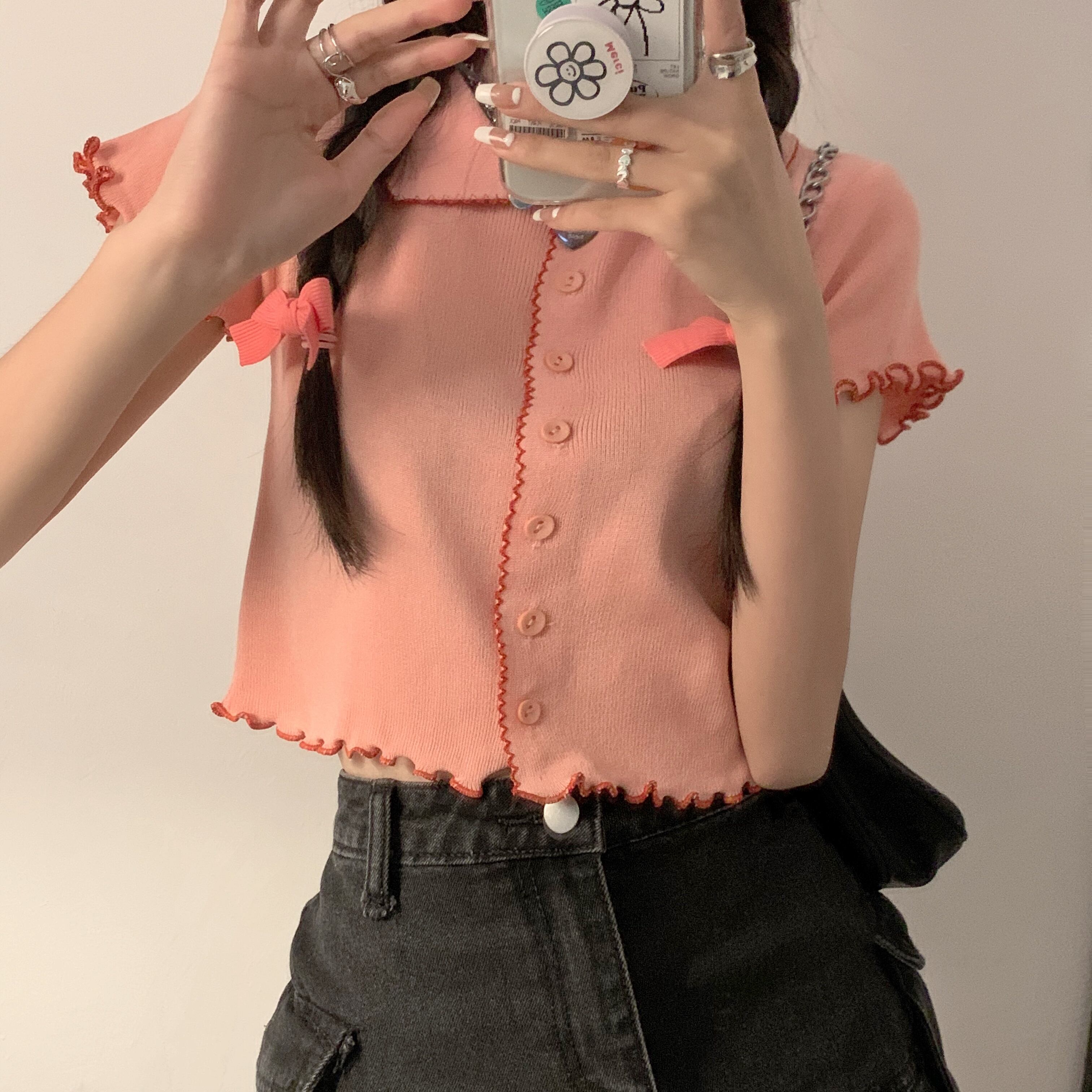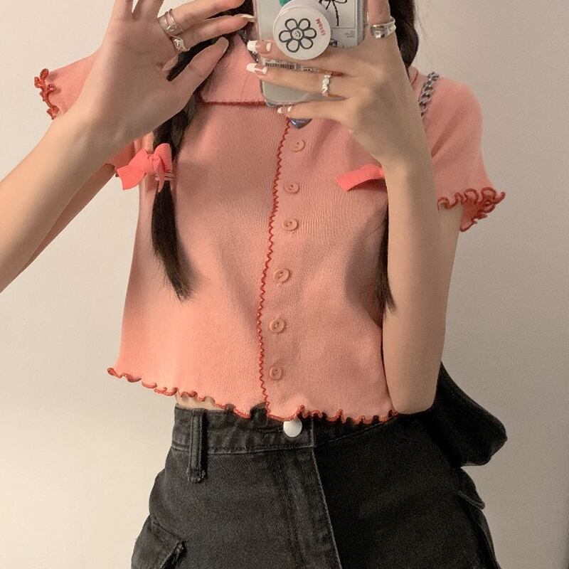 ニットシャツ サマークロップトップ トップス 夏物 タオタオイ54952609912