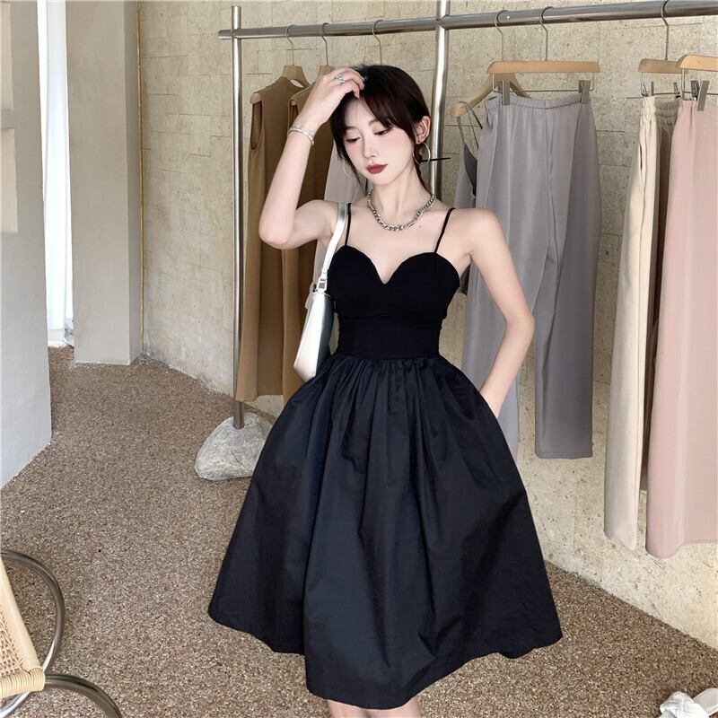ブラックドレス サマースタイルAラインスカート ウェスト 夏物 タオタオイ12275141910