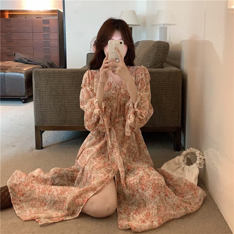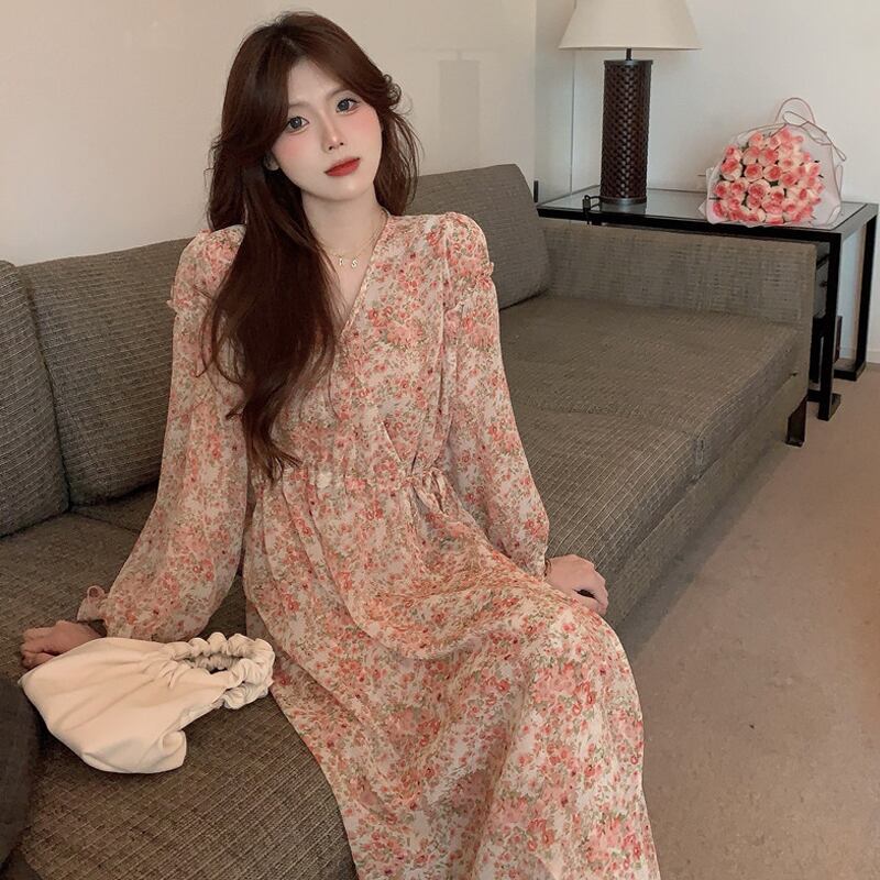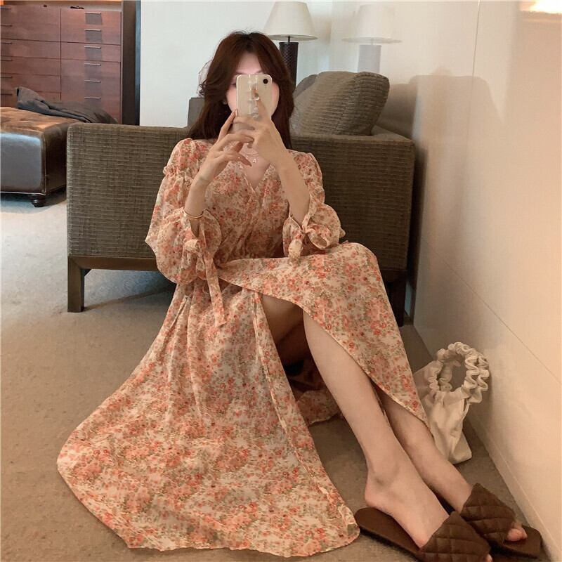 フローラルシフォンドレス サマーロングスカート 大人ガーリー スウィート キュート カジュアル 夏物 花柄 タオタオイ53934225878