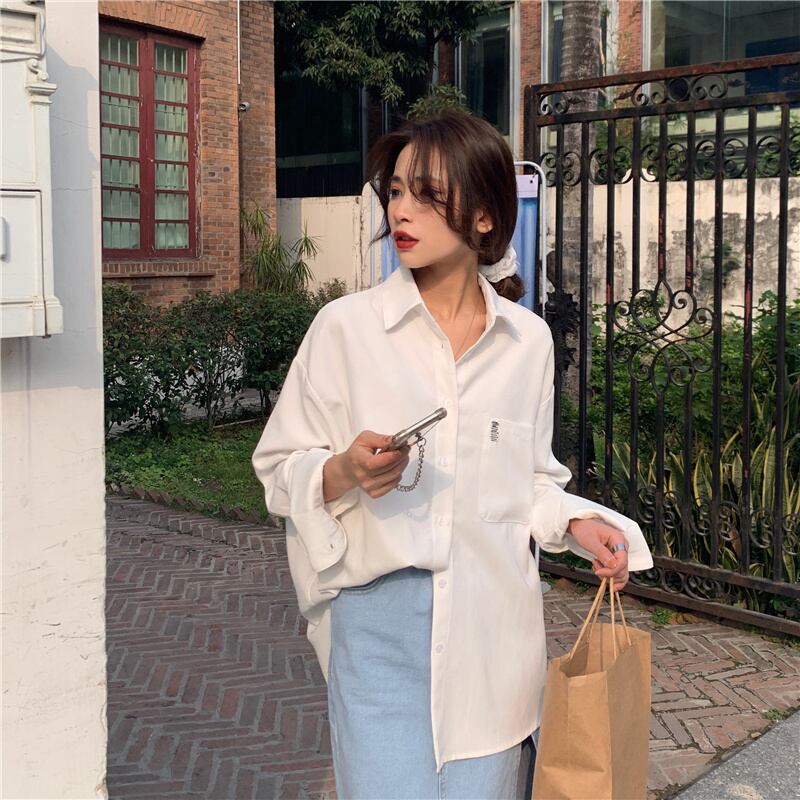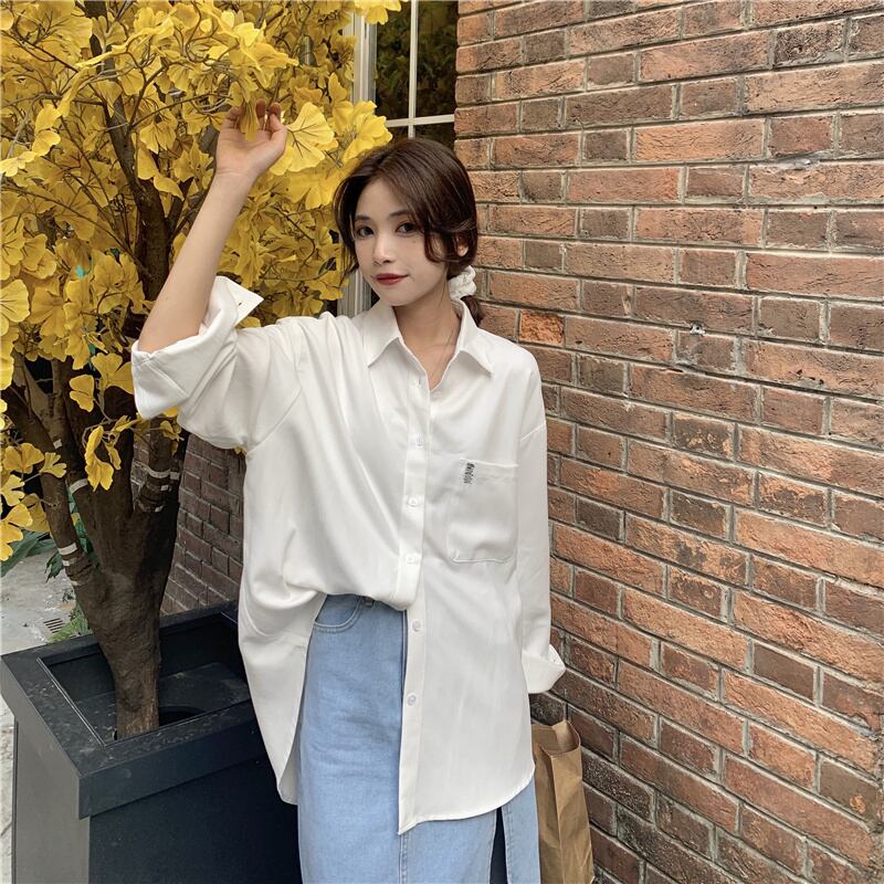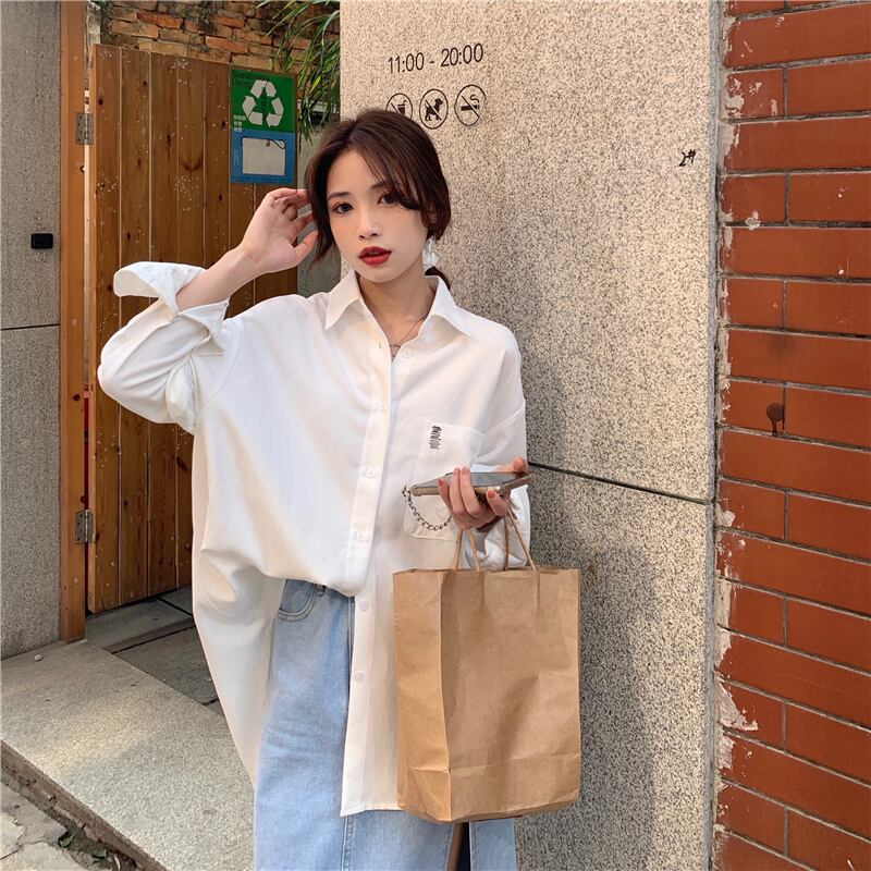 ホワイトシャツ レディーススタンダードスプリングオータムトップス ロング レトロ 春物 秋物 タオタオイ81380670351