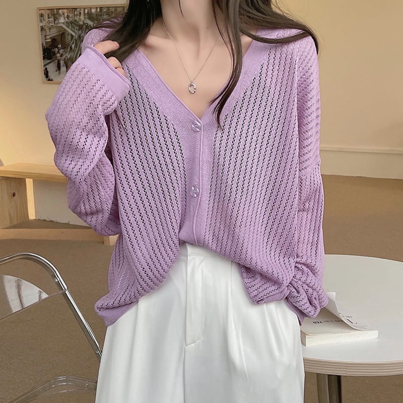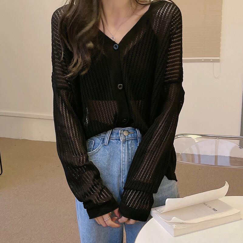 ニットカーディガンジャケット 薄手サマースタイルVネックショートトップス ドレス ロング 夏物 タオタオイ31434986012