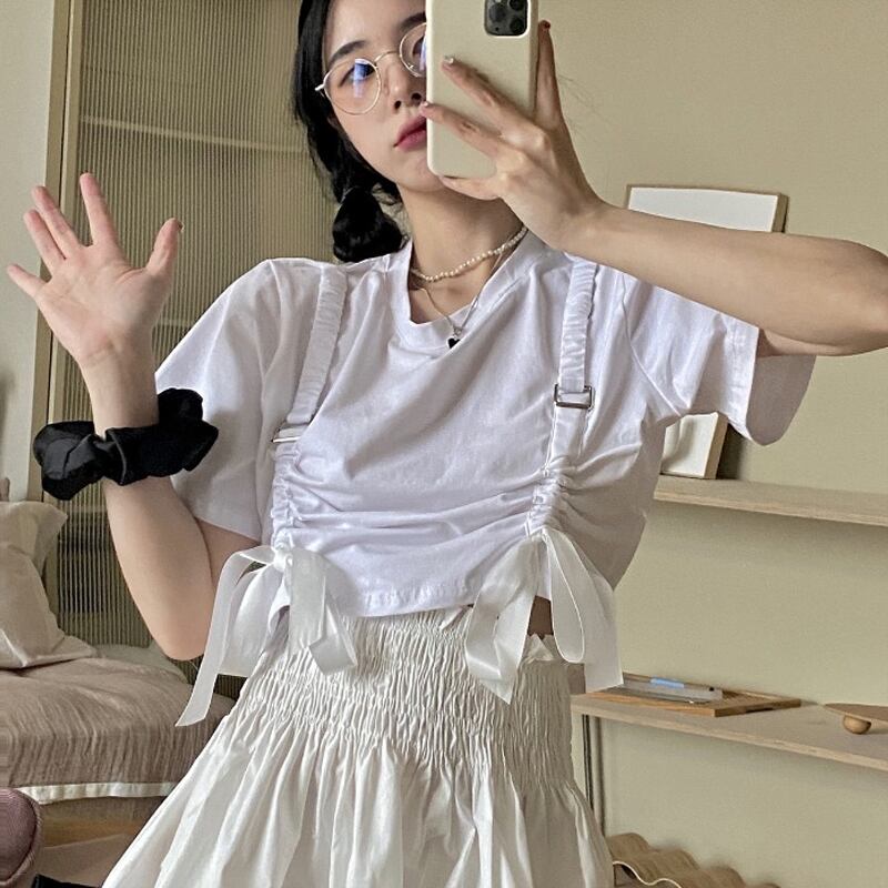 ホワイトショートTシャツ サマーレッドルーズトップス 夏物 タオタオイ40304271026