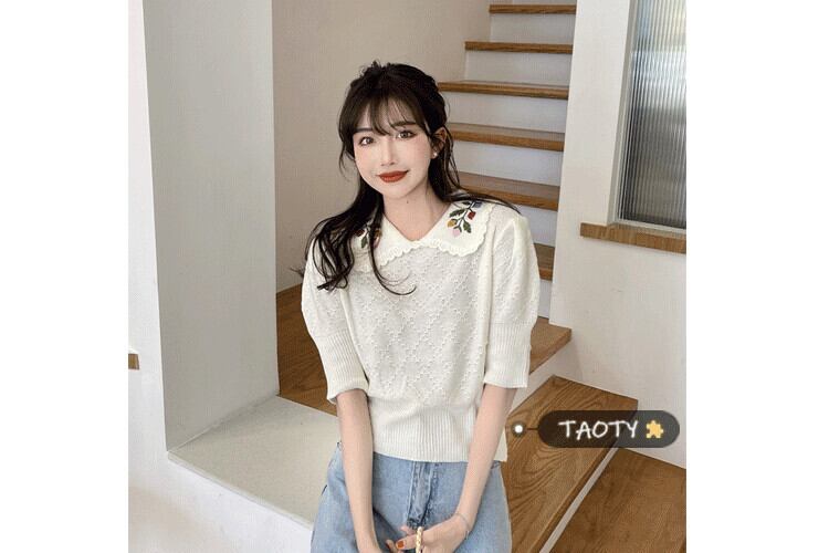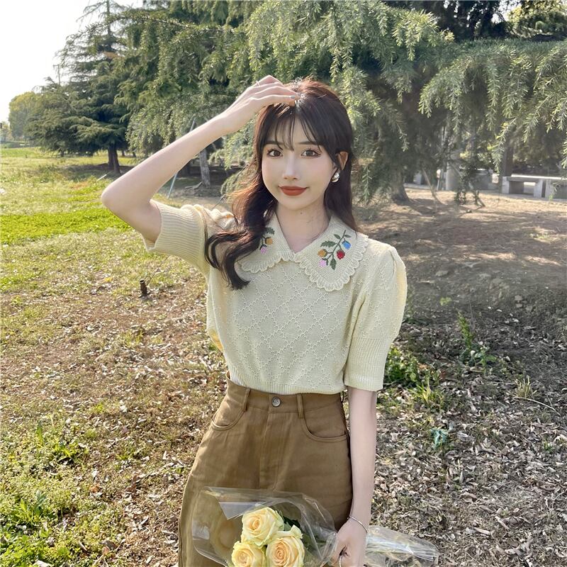 カラーショートTシャツ サマールーズニットトップス 夏物 タオタオイ37349701497