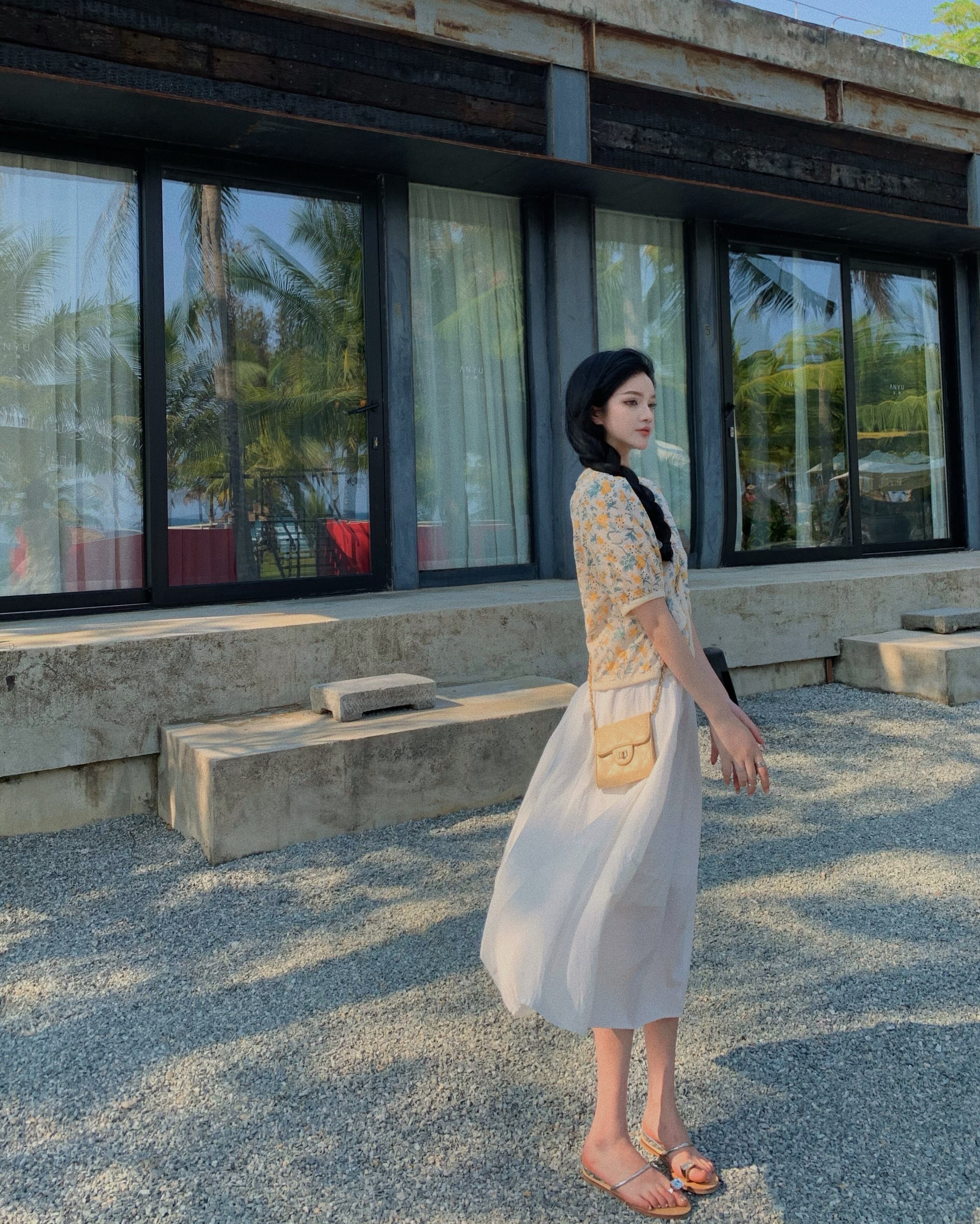 色:刺繡半袖ワンピース,白いハーフスカートワンピース
