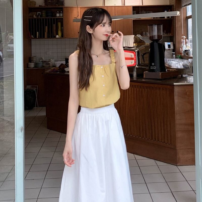 色:黄色のサスペンダー,ホワイトサスペンダー,白いスカート,緑のスカート