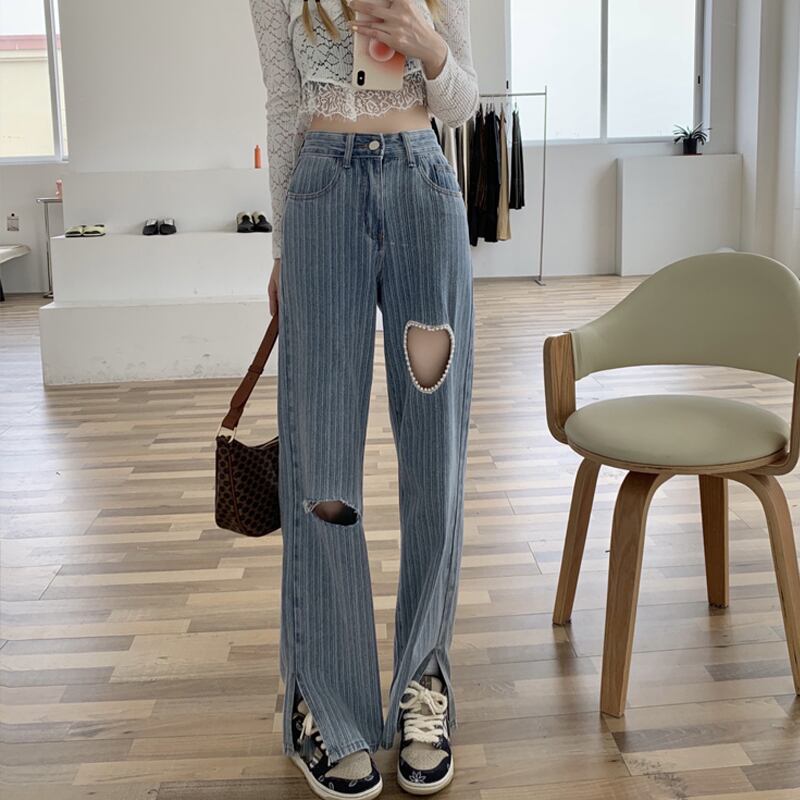 ジーンズ レディースサマーハイウェストルーズパンツ レッド 夏物 タオタオイ67596432538