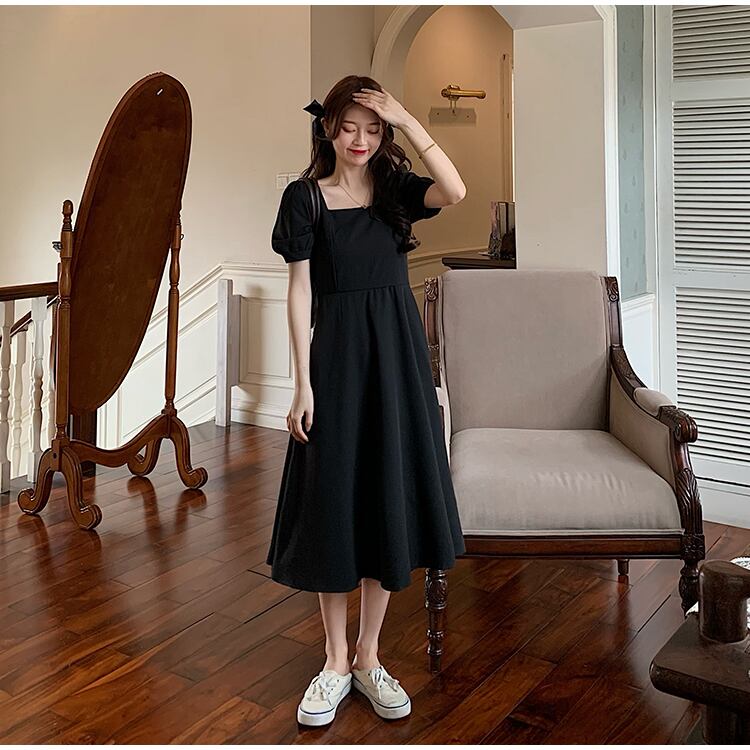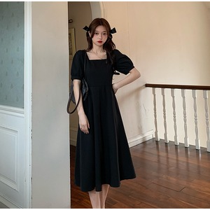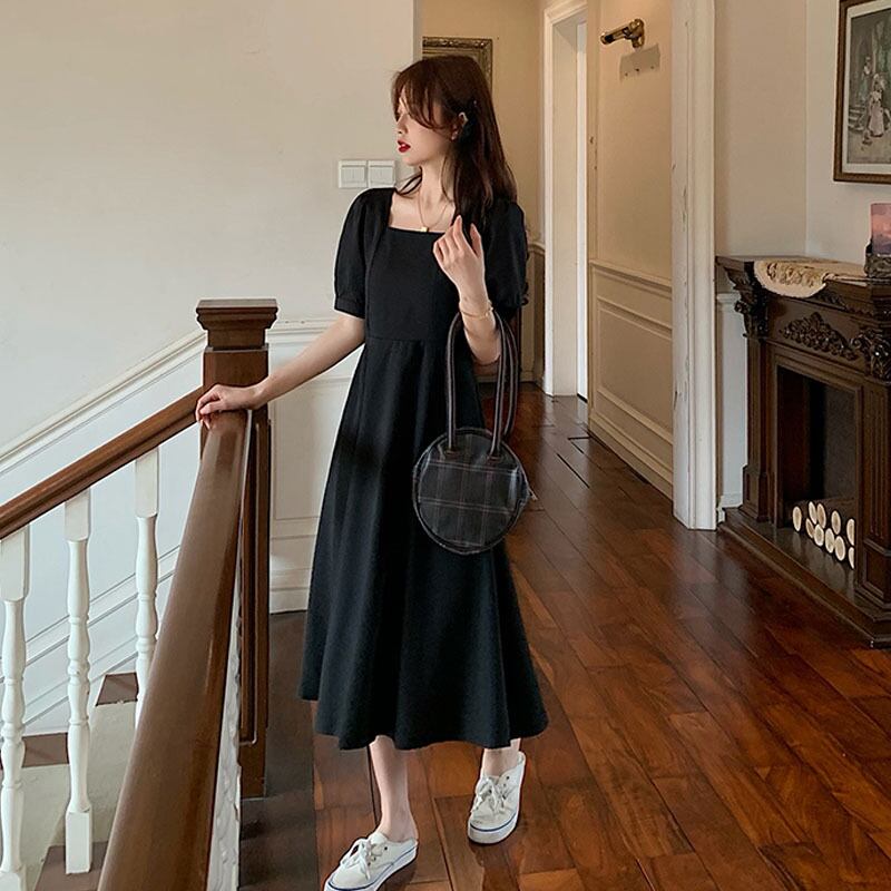 スタイルブラックドレス サマースタンダードスリーブスカート レトロ 夏物 スクウェア タオタオイ55808401924