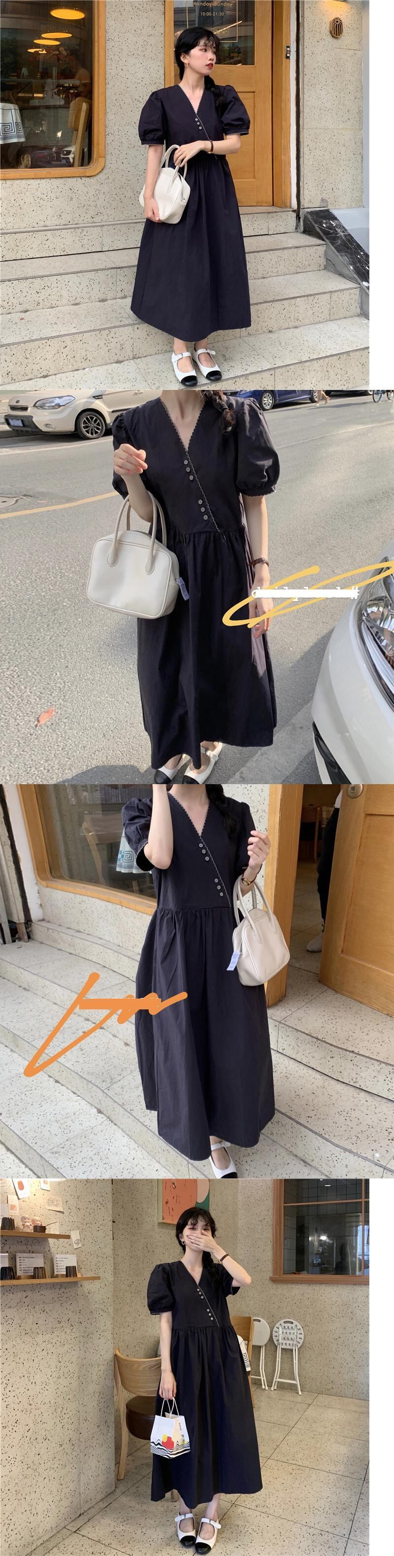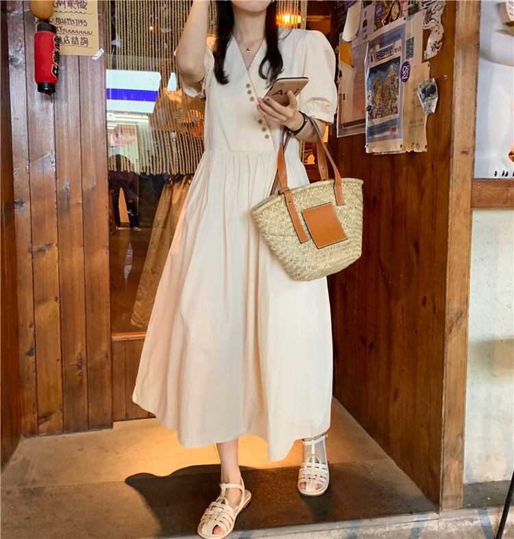 スタンダードカジュアルドレス サマールーズVネックスリーブロングスカート レトロ 夏物 タオタオイ19995559333