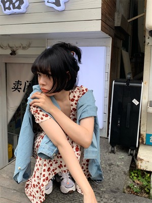スタンダードフローラルドレス サマーウェスト薄手スカート レトロ 夏物 花柄 タオタオイ96800959836
