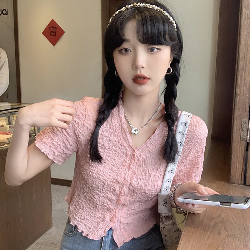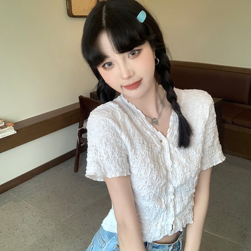 ホワイトショートTシャツ サマーVネックトップス 夏物 タオタオイ53254191367