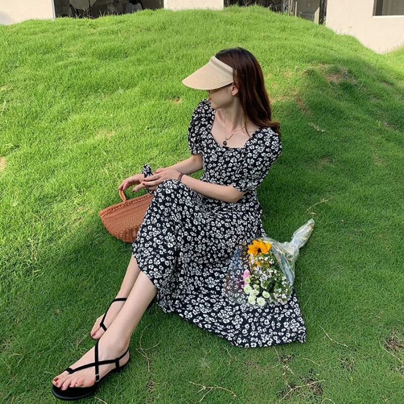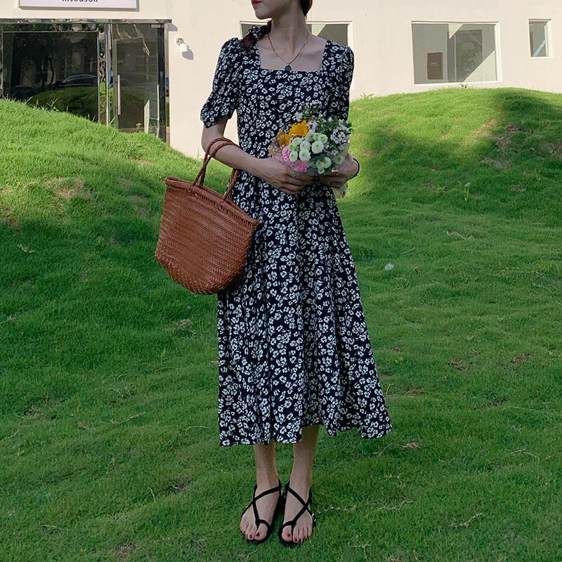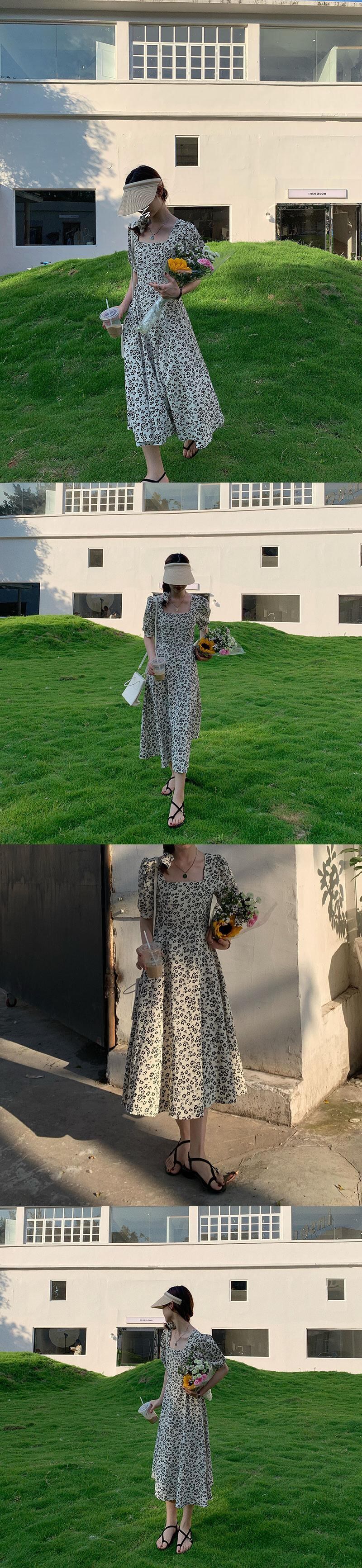 フローラルドレス サマースタイルウェストロングスカート 夏物 花柄 スクウェア タオタオイ70402628577