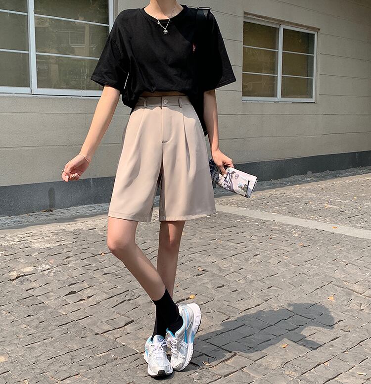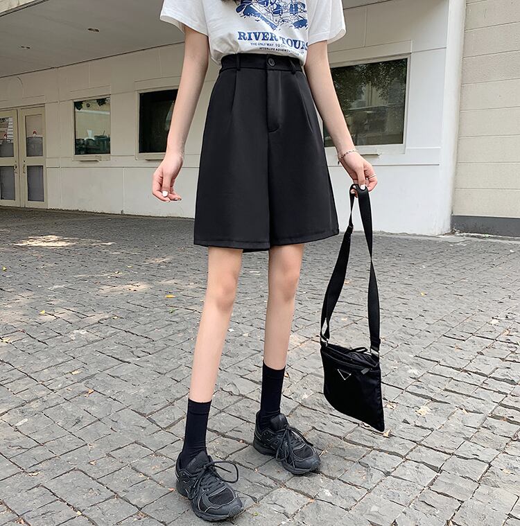 ブラックショーツ サマールーズパンツ ハイウェストウェストカジュアル 夏物 ブルマー タオタオイ3521524833