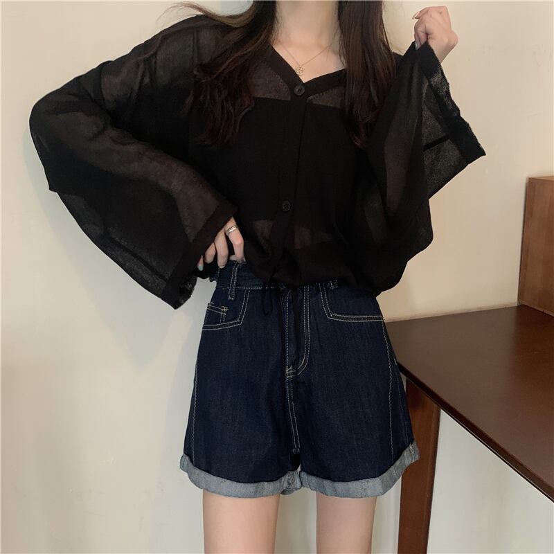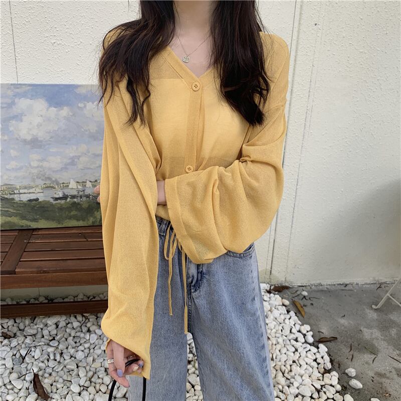 レッドニットセーター サマー薄手カーディガンルーズシャツ Vネックトップス 夏物 タオタオイ15942219792