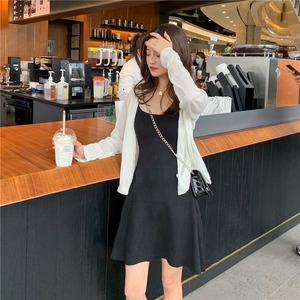 色:白いセーターワンピース,ブラックサスペンダードレスワンピース