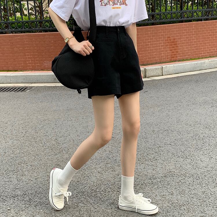 ブラックショーツ サマーレッドルーズハイウェストウェスト薄手ワイドレッグパンツ 大人ガーリー スウィート キュート カジュアル 夏物 ブルマー ワイドパンツ タオタオイ51665687557