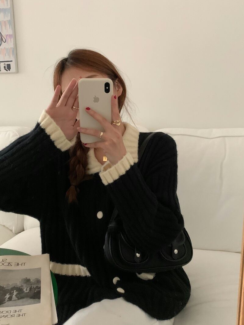 カラーセーター コート ルーズスプリングオータムトップス ロング 春物 秋物 タオタオイ85105865446
